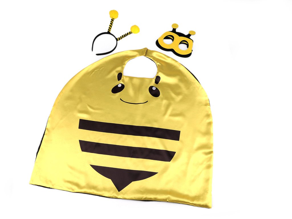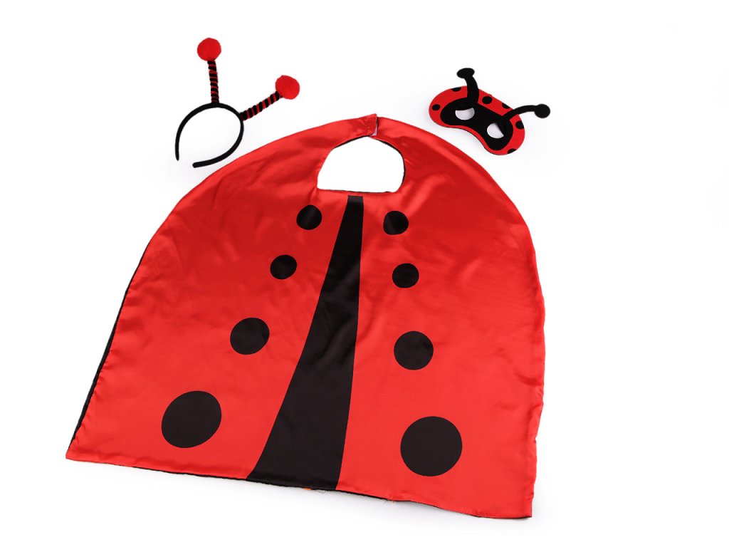 Roztomilý karnevalový kostým čmeláka či berušky okouzlí každé dítko. Skládá se ze saténového pláště, škrabošky a čelenky s tykadly.