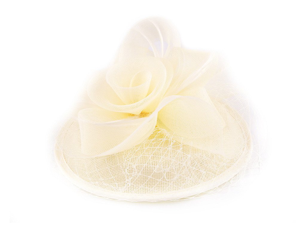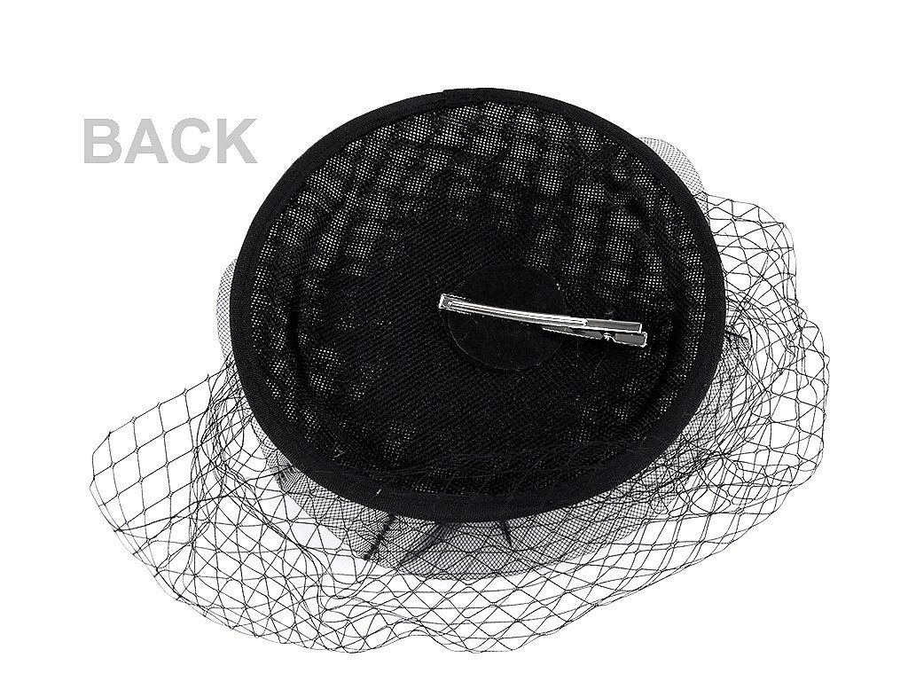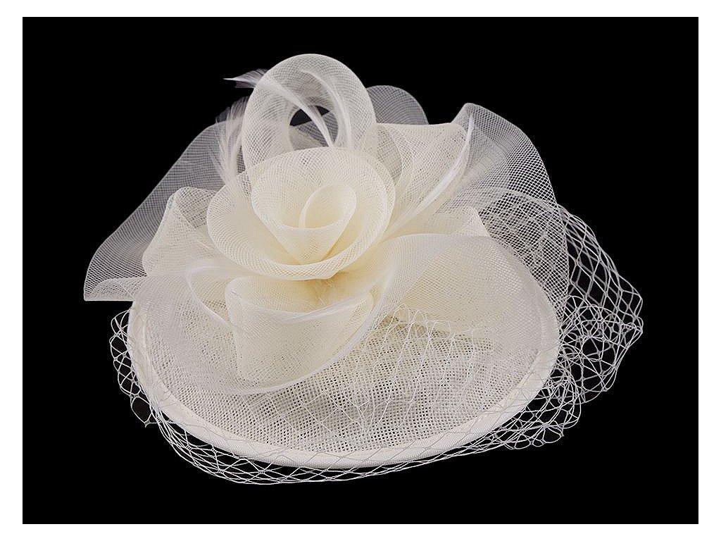 Fascinátor má ze spodní strany dlouhý kovový klips se zoubky. Dá se pohodlně připnout do účesu.