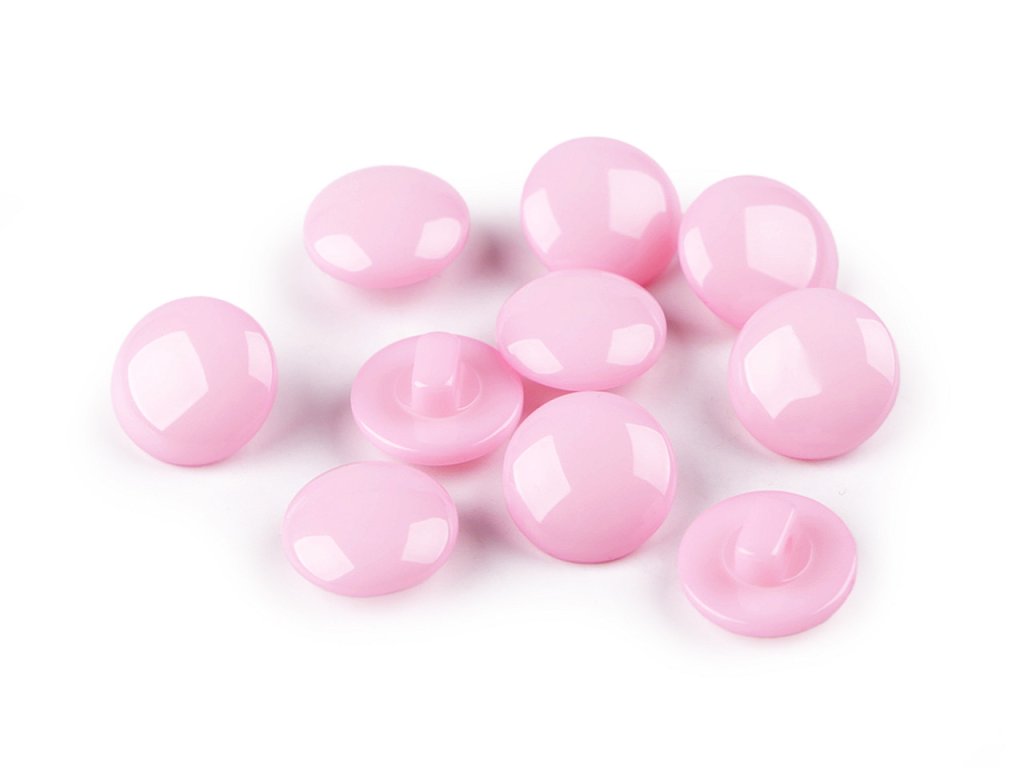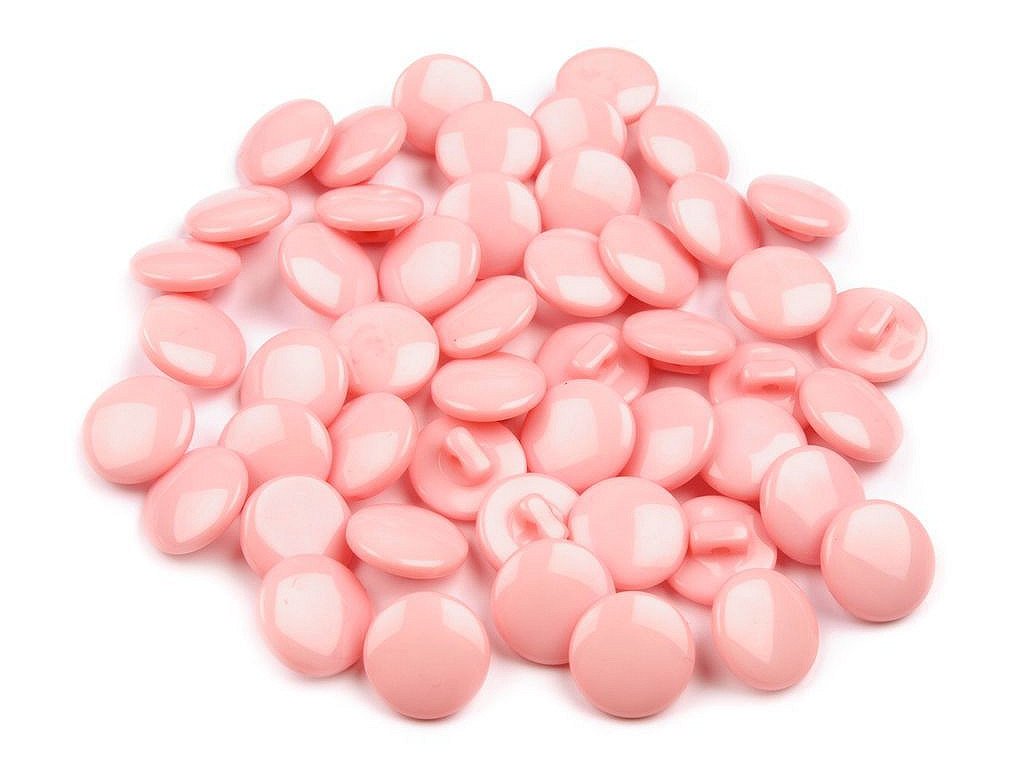 Jednoduché plastové knoflíky, ve veselých barvách, vyniknou na halenkách, šatech nebo svetrech. Jsou vhodné také na výrobu různých dekorací. Knoflíky mají spodní přišívání. Jsou mírně vypouklé.