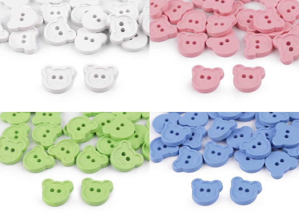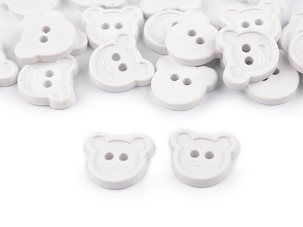 Roztomilé knoflíky mají tvar medvídka a zdobí je nápis "smile". Originálně doplní každý oděv i doplňky. Můžete je našít na dětské svetříky, šaty, bundy, batůžky i tašky.