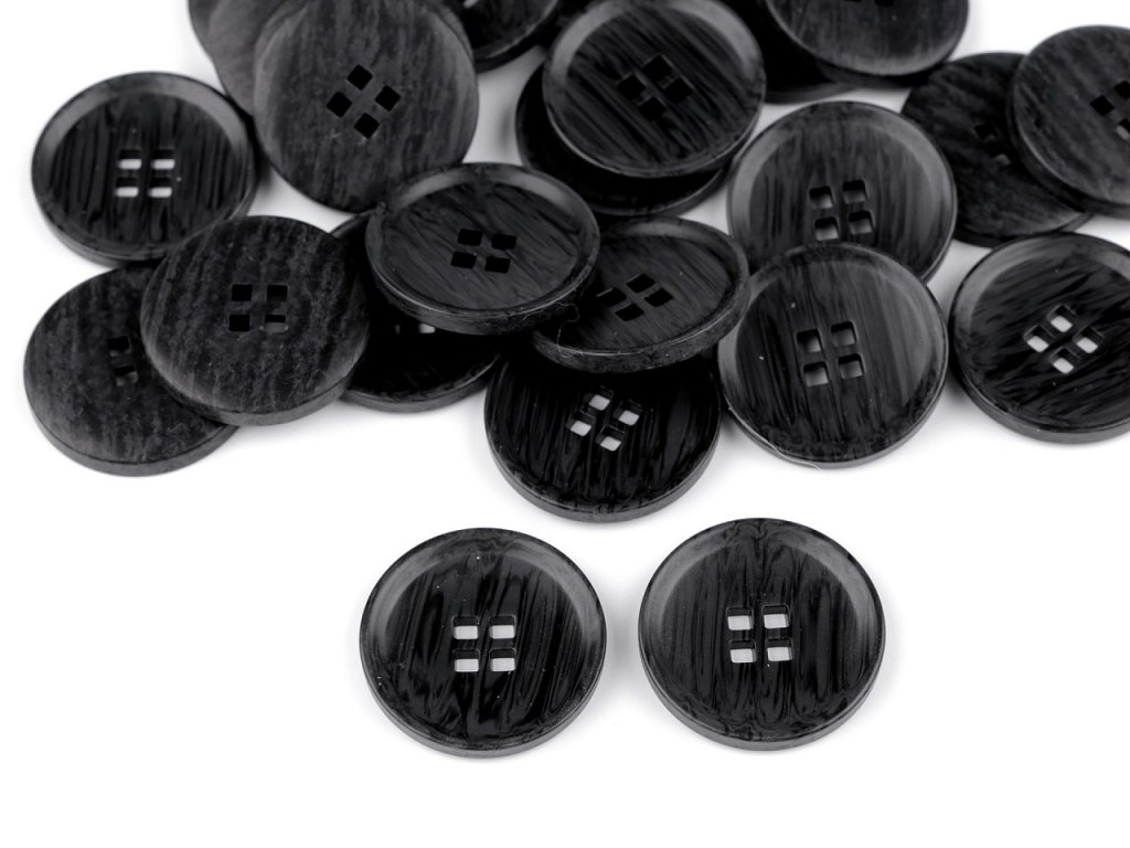 Čtyřdírkové knoflíky mají zesílený okraj a svým zabarvením připomínají strukturu dřeva. Jejich dírky nejsou typicky kulaté, ale mají tvar čtverce. Knoflíky vyniknou na kabátech, svetrech, vestách, sakách apod.