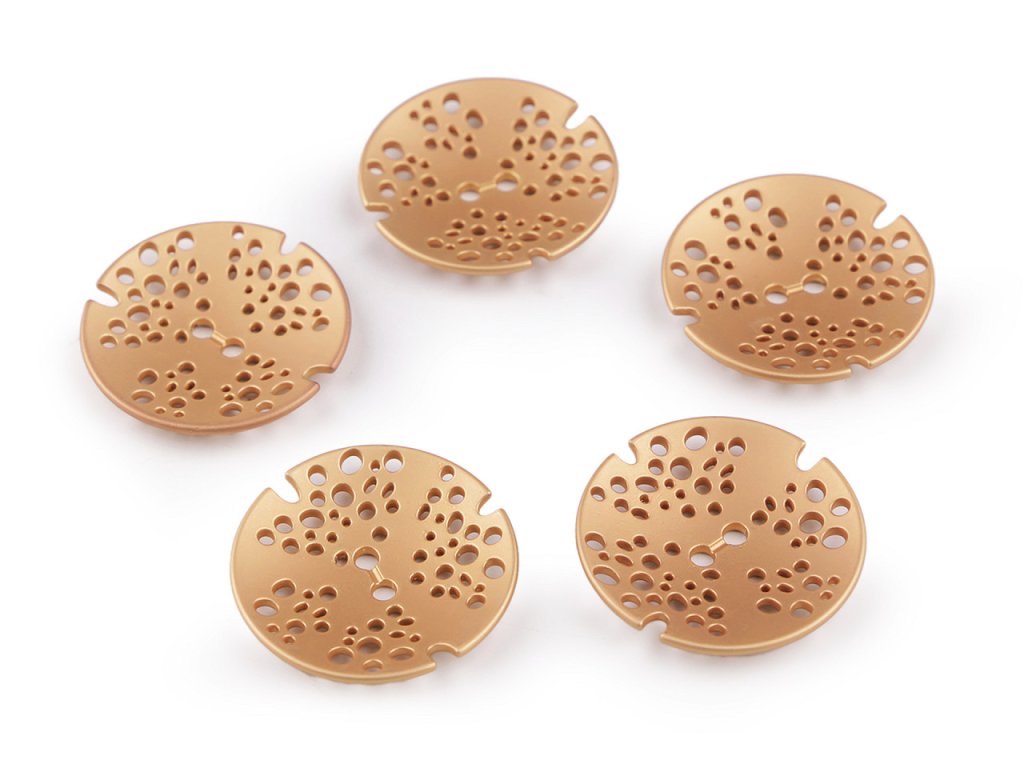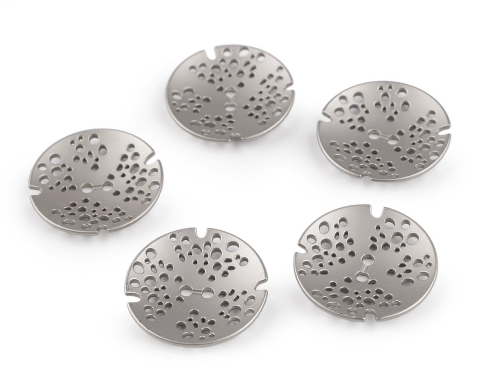 Kovové knoflíky s děrovaným designem vyniknou na kabátech, sakách, bundách nebo kardiganech. Jsou kvalitní, lehce vypouklé a na oděvech upoutají pozornost.