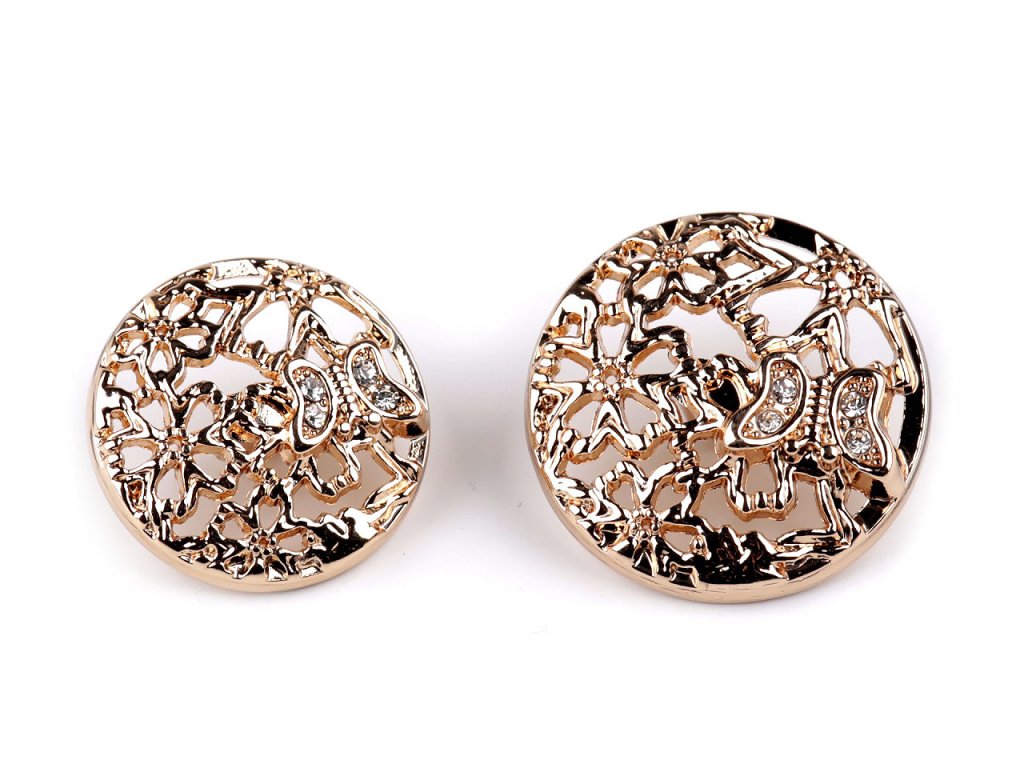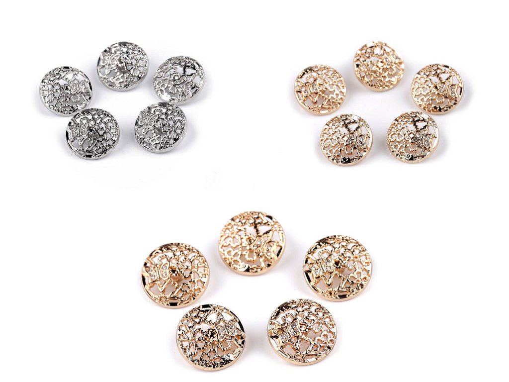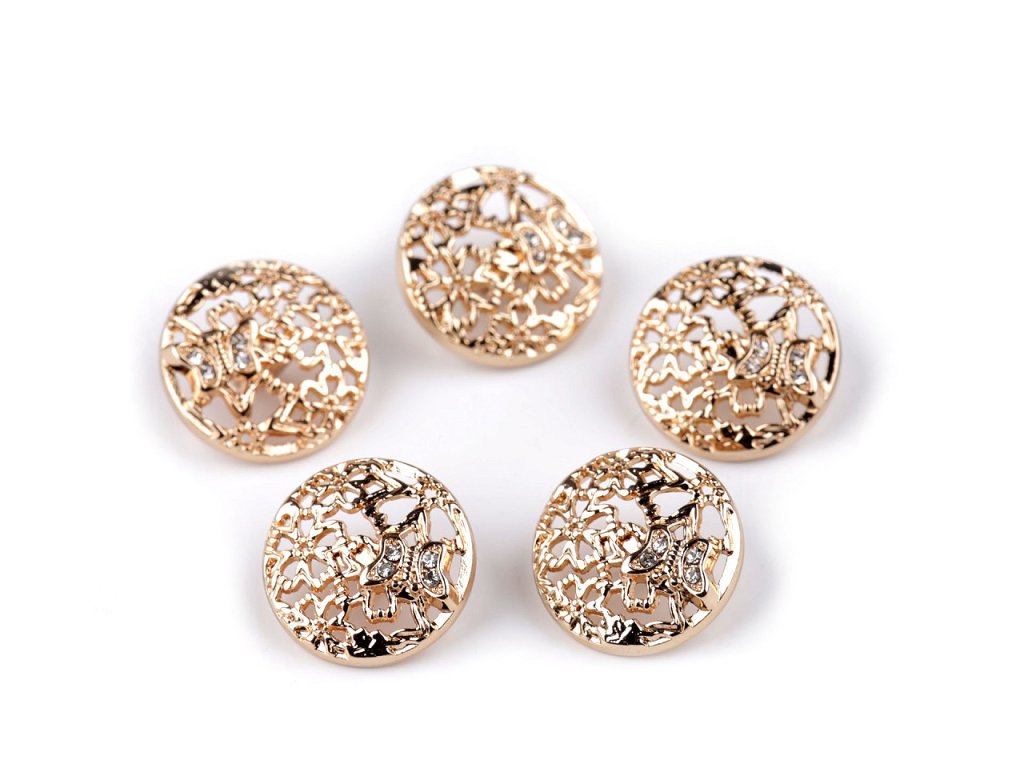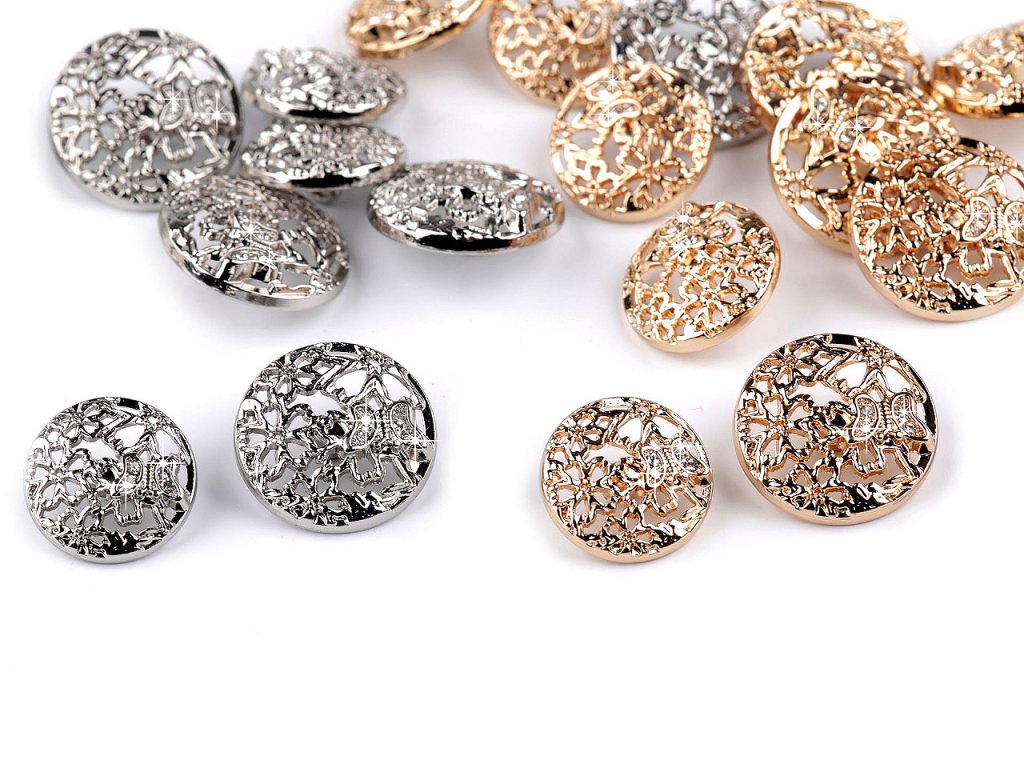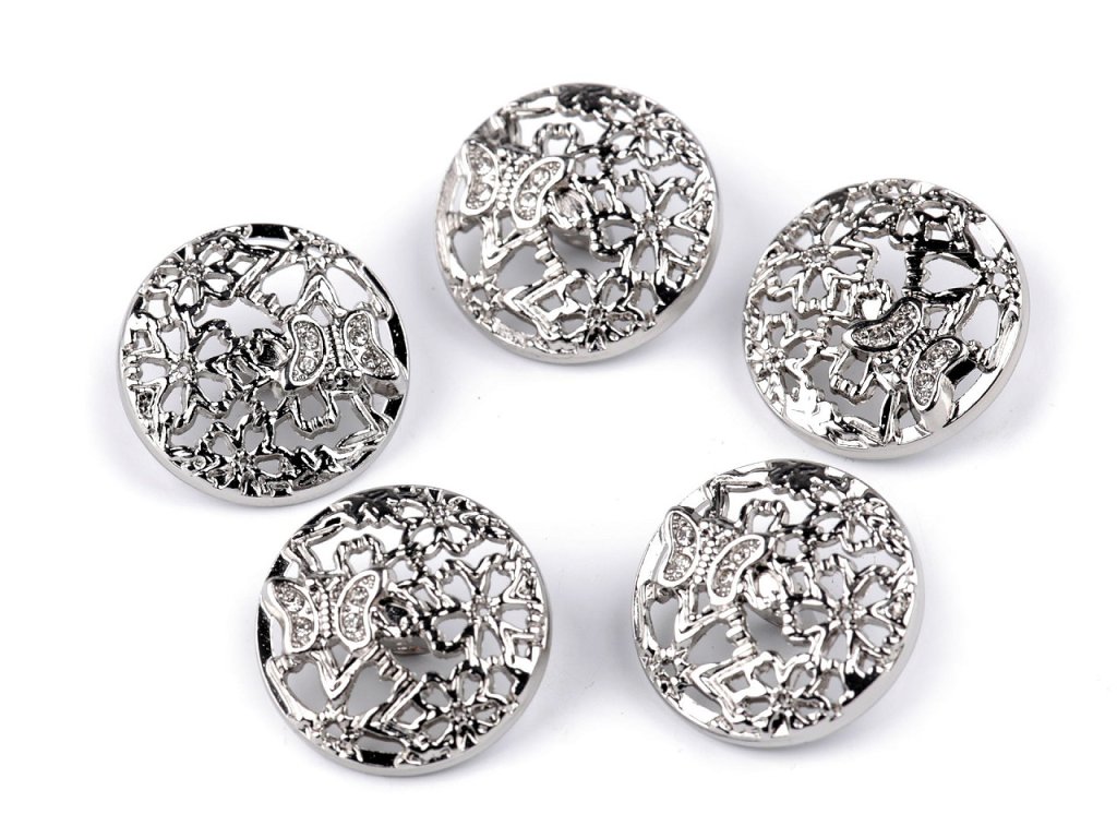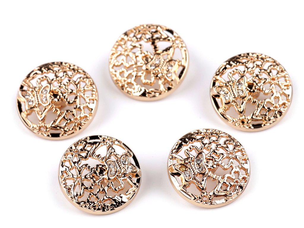 Kovové knoflíky jsou kvalitní a stylově ozdobí každý oděv. Zdobí je design s motýlkem, broušenými kamínky a květy. Mají spodní přišívání.