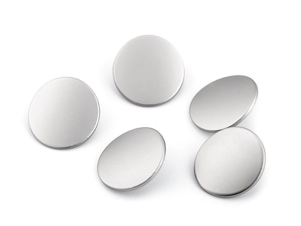 Matné kovové knoflíky se spodním přišíváním využijete k našití na saka, kabátky, svetry apod. Jsou tenké a mají nízkou hmotnost.