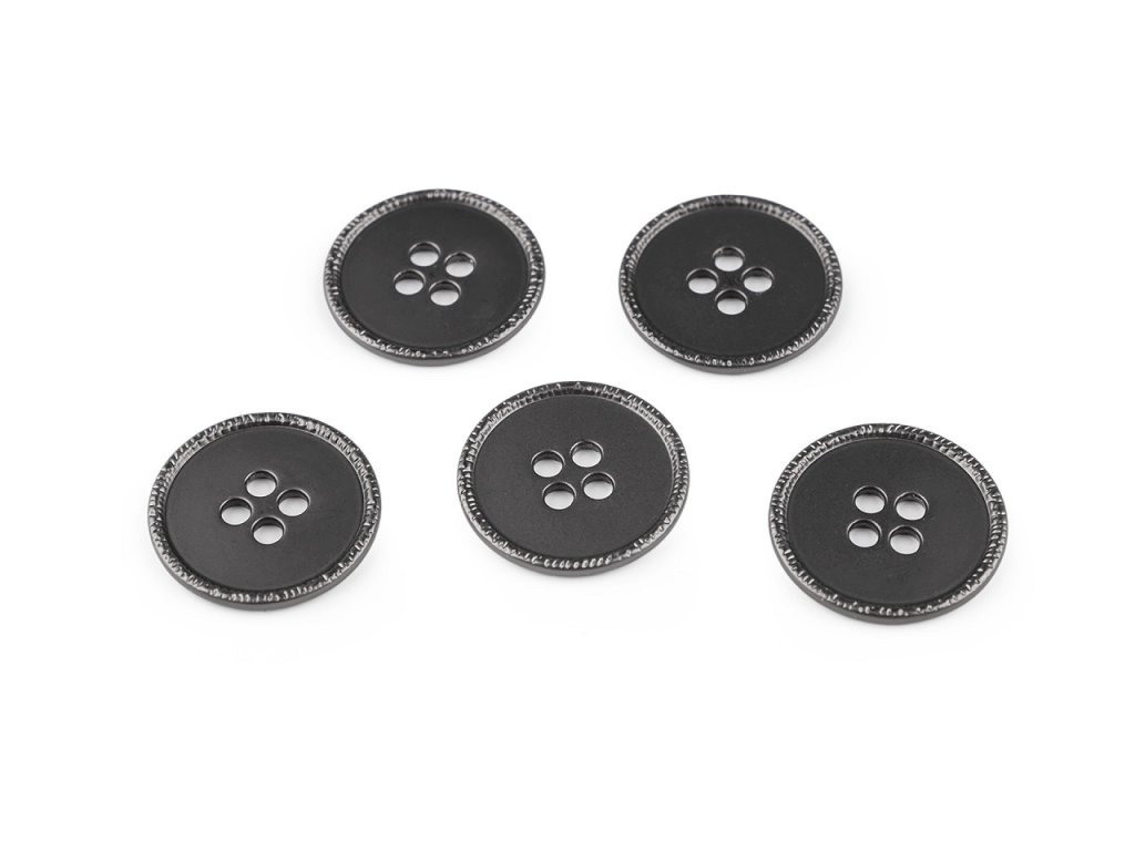 Kovové knoflíky oceníte nejen kvůli designu, ale i kvalitě. Z lícové strany jsou hladké, s matným leskem, okraje jsou vystouplé s reliéfem. Knoflíky vyniknou na bundách, kabátech i modernějších sakách.