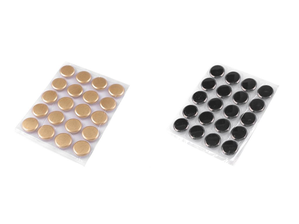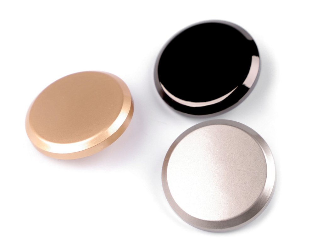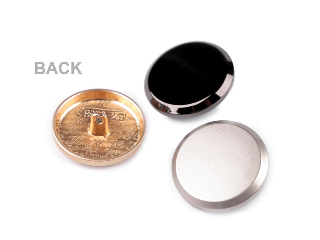 Ploché kovové knoflíky se spodním přišíváním ozdobí saka, kabáty, vesty nebo také na doplňky jako jsou kabelky či tašky. Vynikají vysokou kvalitou. Knoflíky nejsou ploché celé, okraje mají zaoblené.