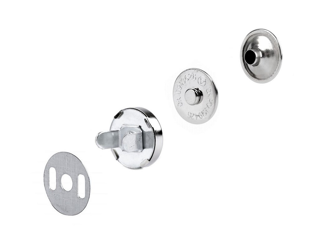 Magnetické zapínání s nýtkem se používá na uzavírání tašek nebo na klop kabelek či batohů. K aplikaci slouží piston k nýtování, který najdete pod kódem 880262 a lisem 070241 nebo 790770.