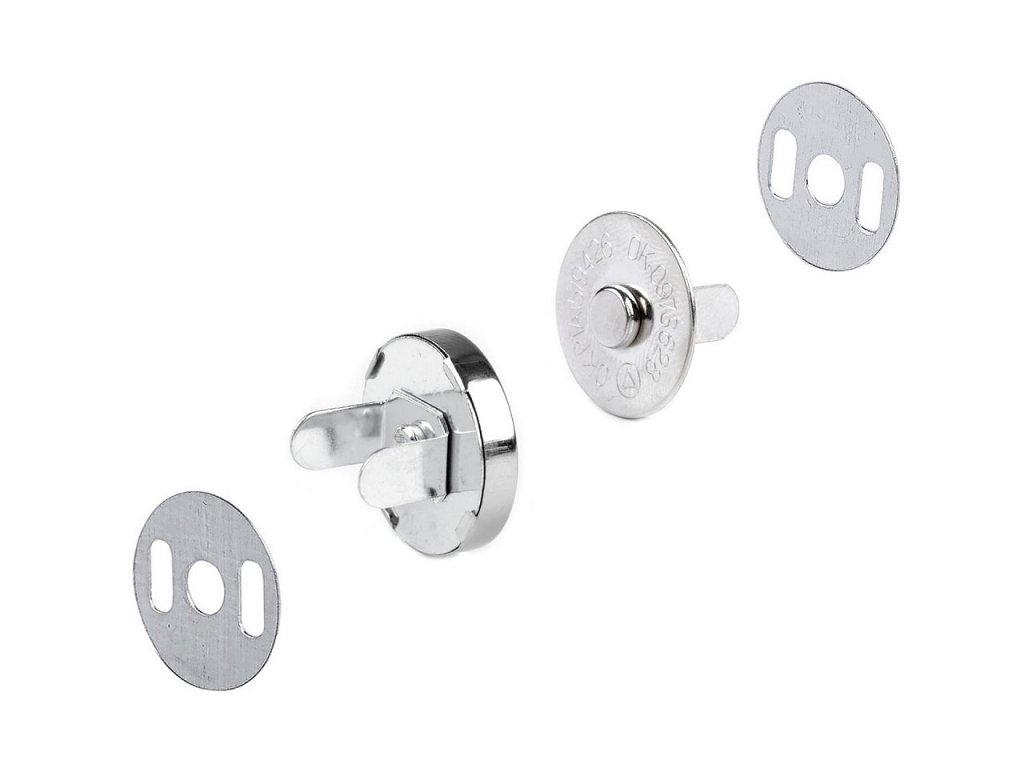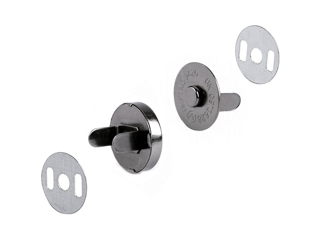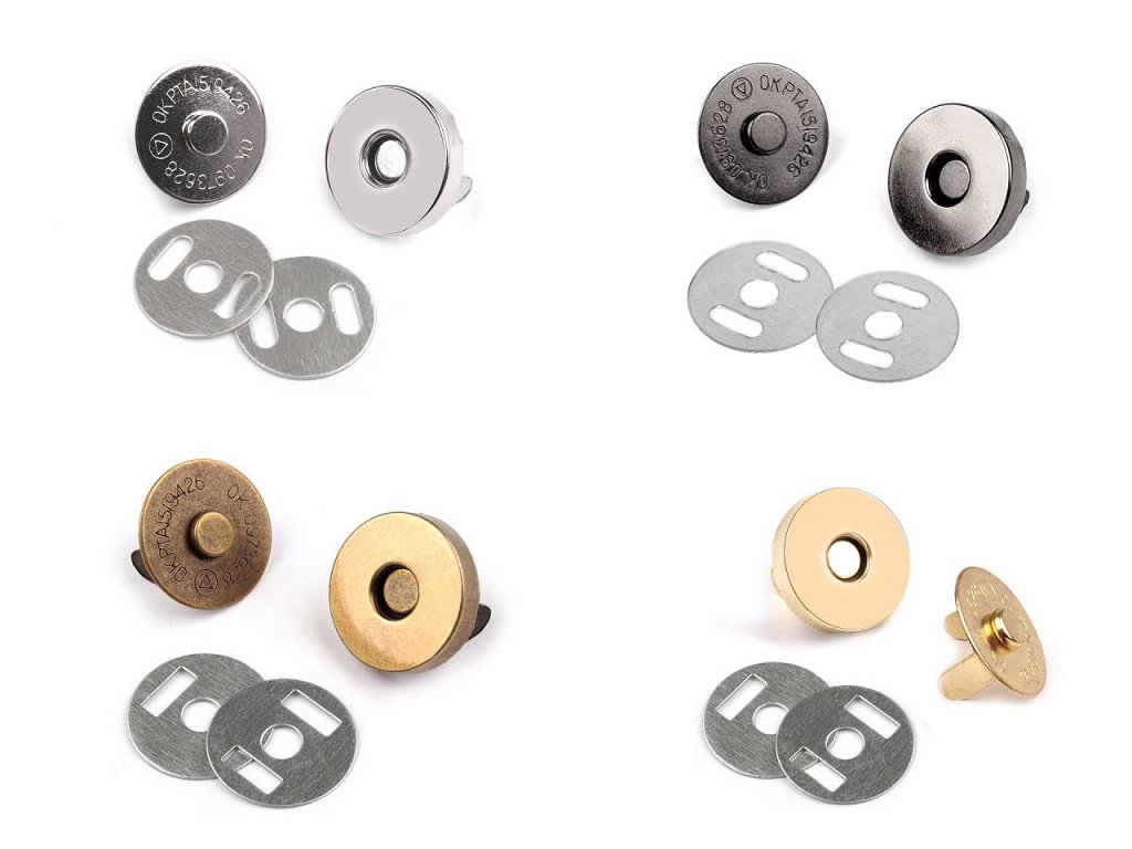 Populární magnetické zapínání má široké možnosti využití. Často se tento typ, zvaný magnetický buldok, používá u společenských kabelek s dekorativní přední klopou.