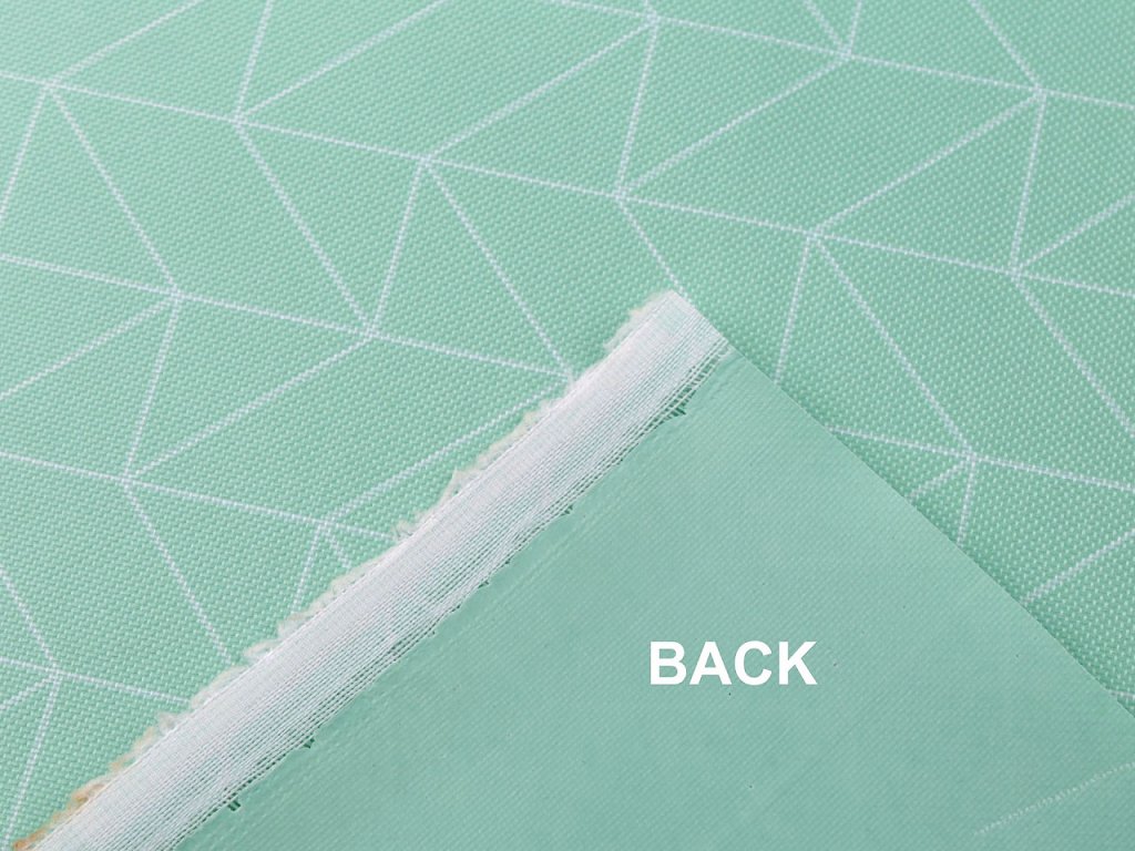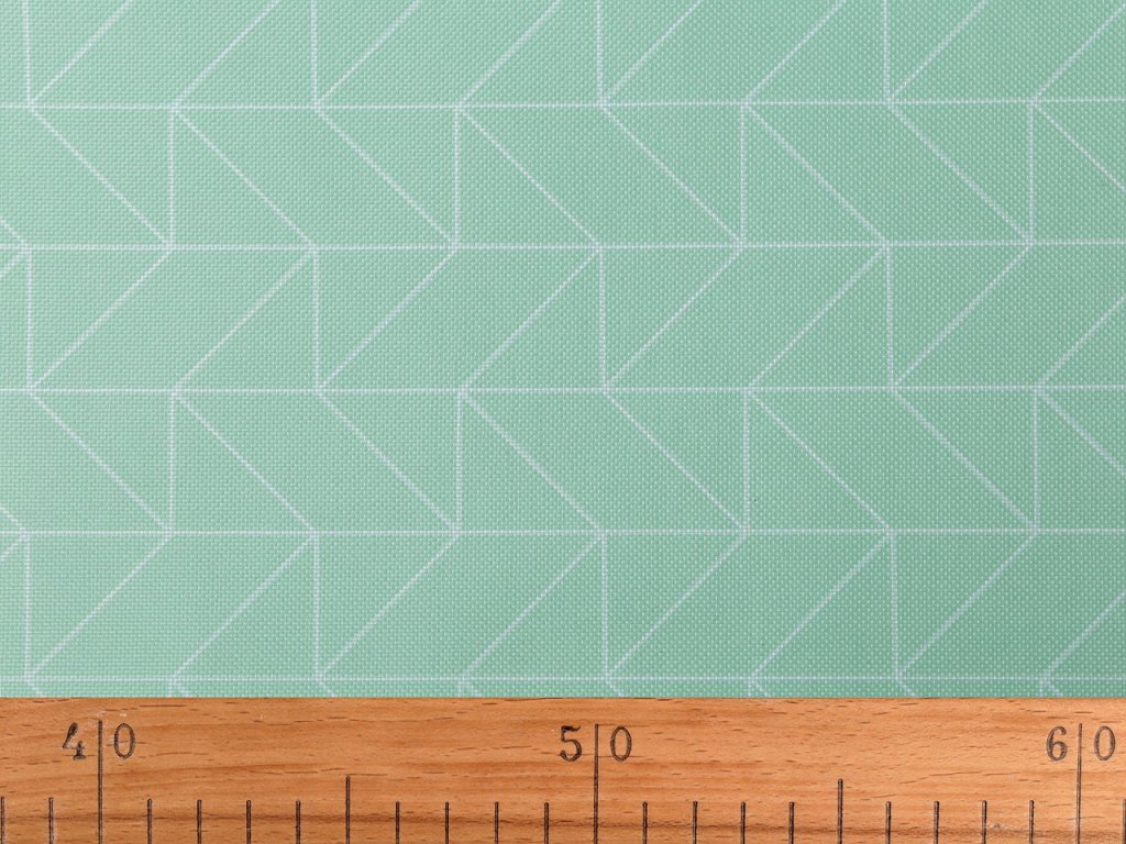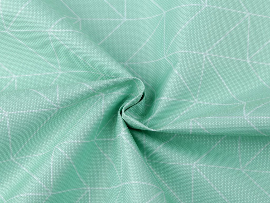 Kočárkovina s geometrickým motivem je z rubové strany opatřená nánosem z PVC s vodoodpudivou úpravou, a díky tomu je nepromokavá. Je pevná, oděruvzdorná a hrubší. Využijete ji na šití tašek, batohů, potahů, kočárků, pelíšků pro zvířátka, sedacích vaků, lehátek apod.