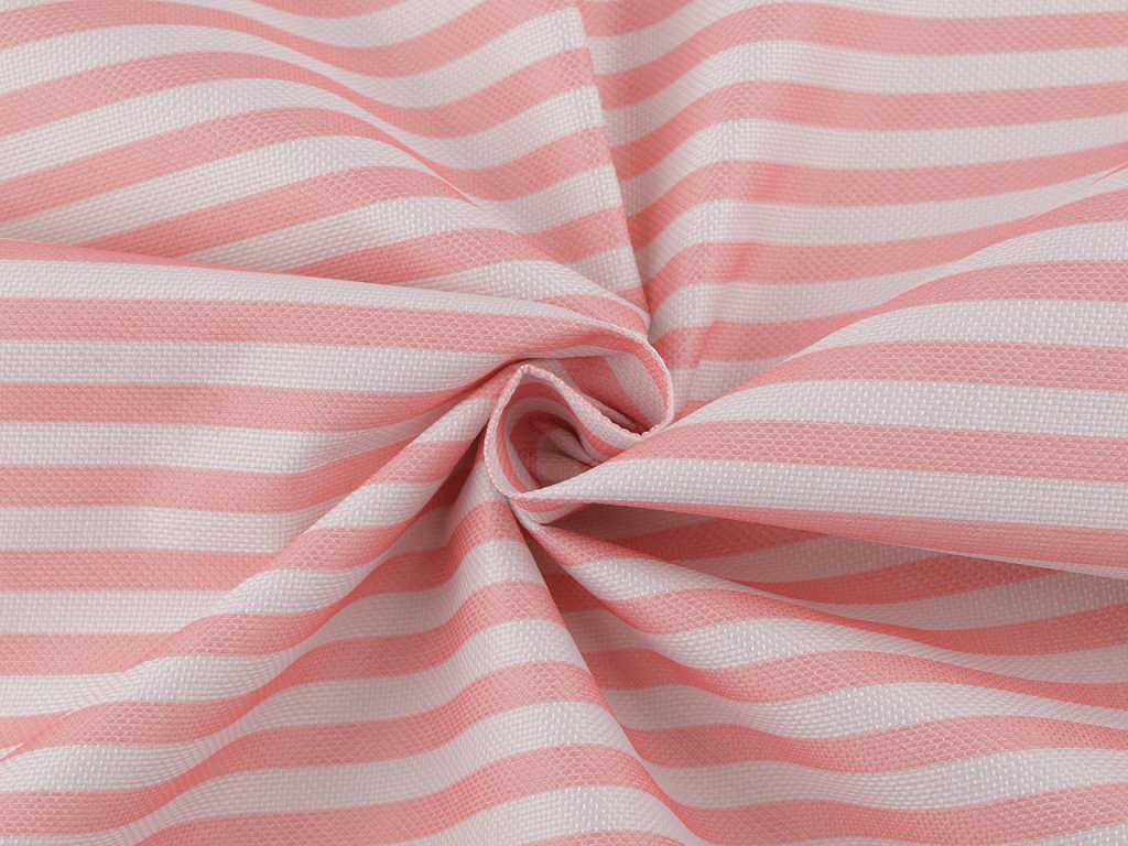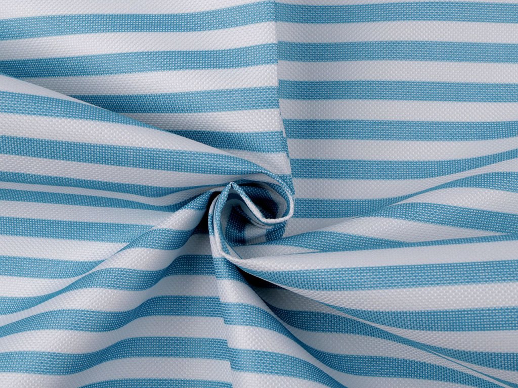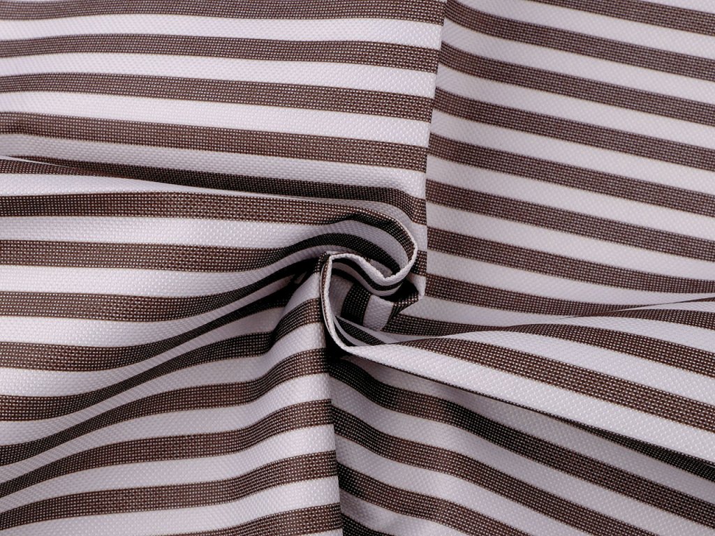 Pruhovaná kočárkovina je z rubové strany opatřená nánosem z PVC s vodoodpudivou úpravou, díky tomu je nepromokavá. Je pevná, oděruvzdorná a hrubší. Využijete ji na šití tašek, batohů, potahů, kočárků, pelíšků pro zvířátka, sedacích vaků, lehátek, slunečníků apod.