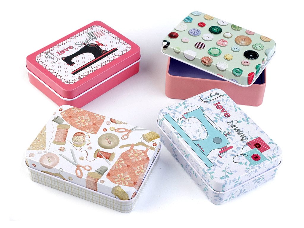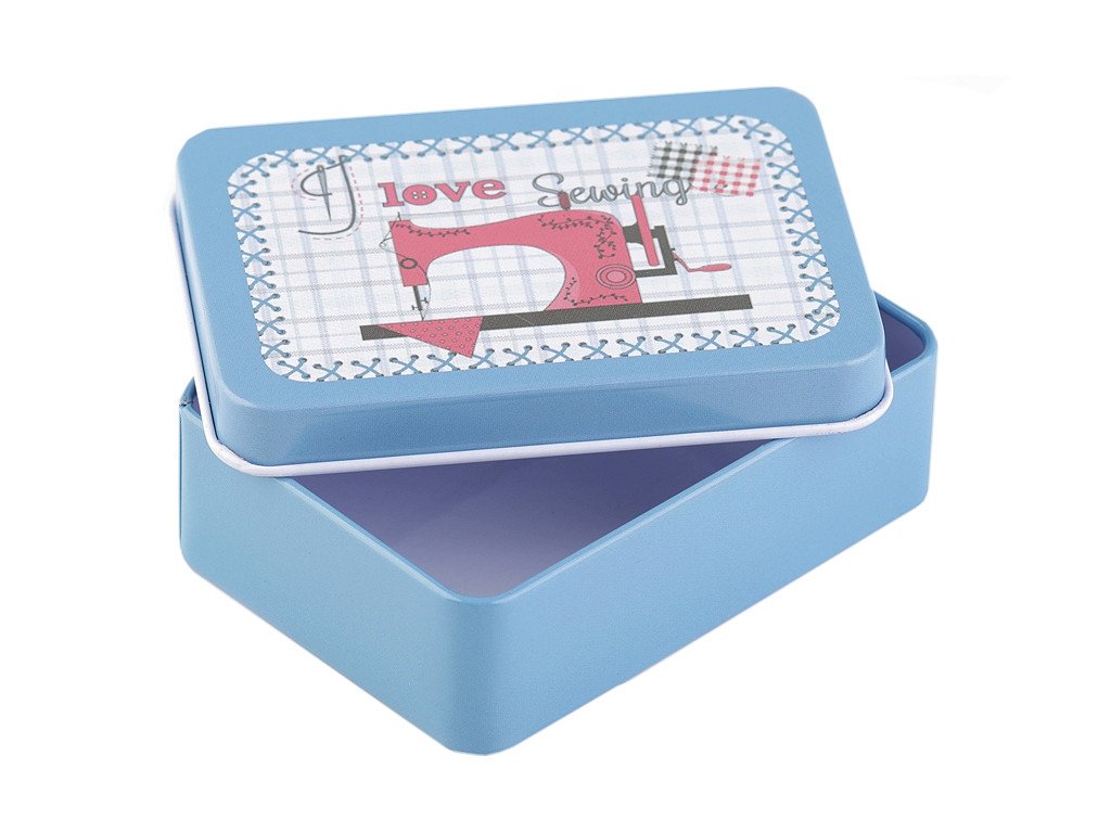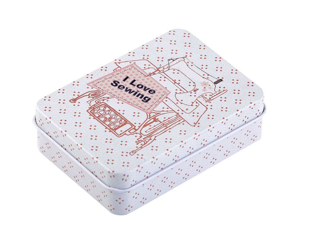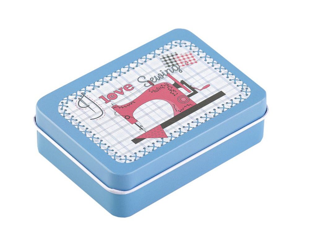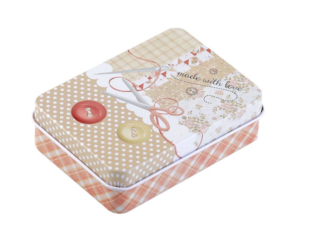 Malou plechovou krabičku využijete na drobnosti. Její švadlenkovský design ji předurčuje na uložení šicích potřeb jako jsou knoflíky, jehly, nitě, zkrátka všechny drobnosti, jež švadlenka potřebuje. Má sundavací víko, takže si do ní vše pohodlně schováte. Krabička se stane praktickým i ozdobným pomocníkem, který vás vždy potěší.