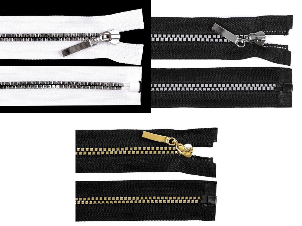 Dělitelný kostěný zip můžete našít na bundy, mikiny apod. Má efektní čtvercové zoubky.