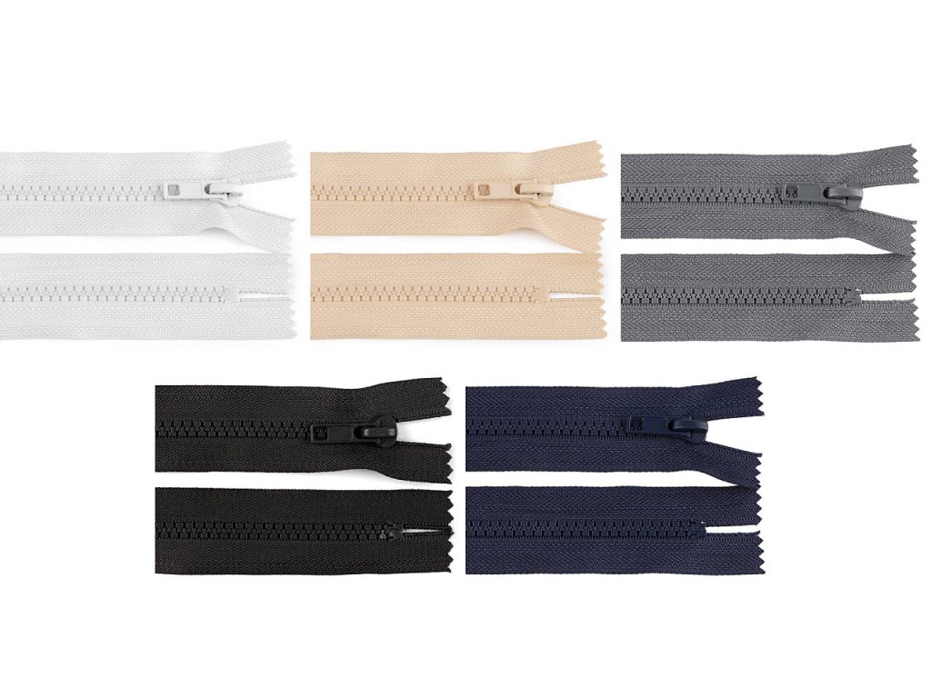 Nedělitelný kostěný zip je vhodný na kalhoty, mikiny, trička nebo menší tašky.