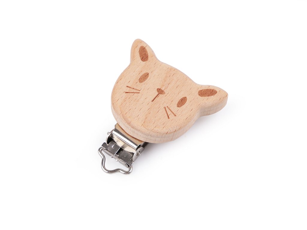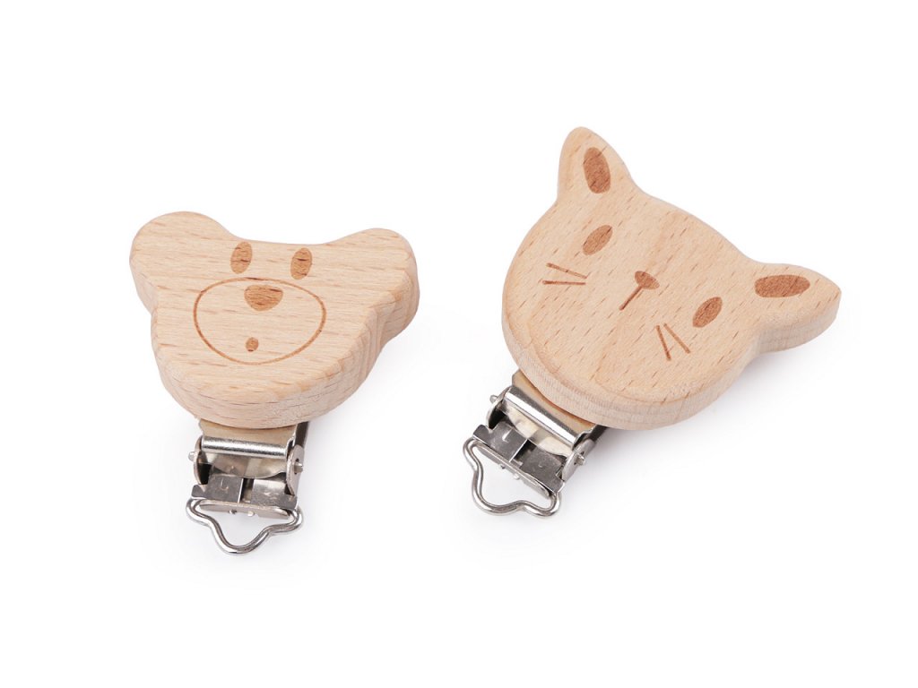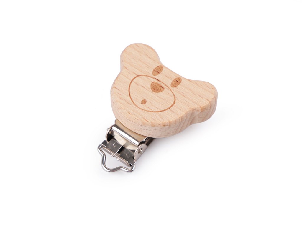 Kovový klip s dřevěnou ozdobou využijete například na jmenovky, kdy skrz jeho průvlek provlečete stuhu nebo šňůrku. Zoubky uvnitř zabraňují klouzání.