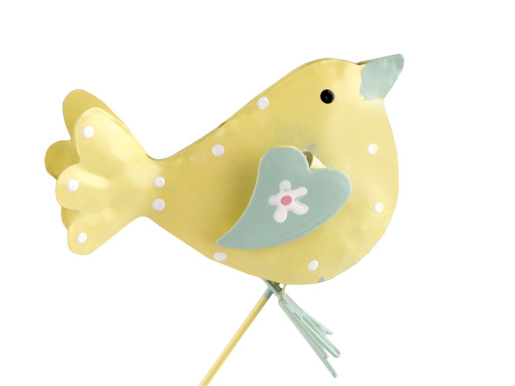 Dekorační zápich s ptáčkem vám oživí květináče, truhlíky, kytice i různá aranžmá. Ptáček je oboustranný a celokovový.