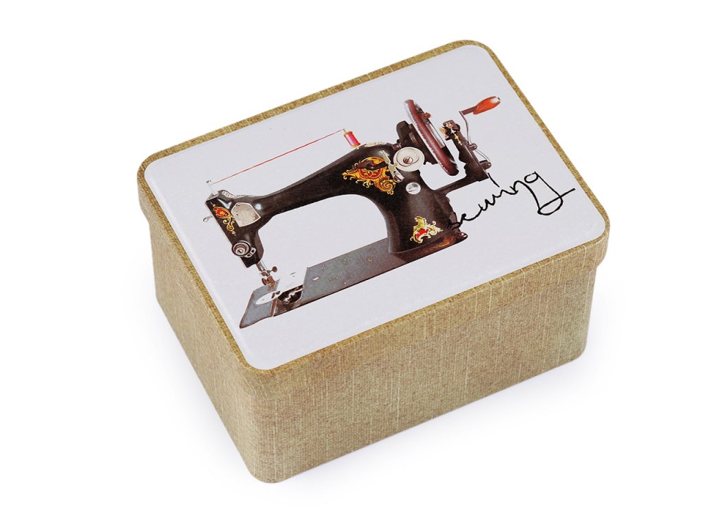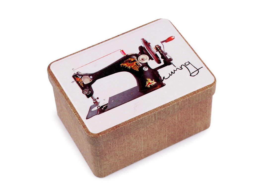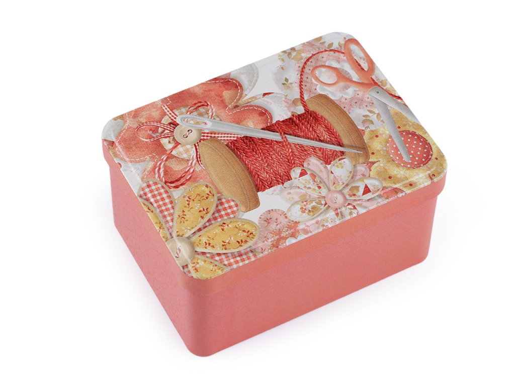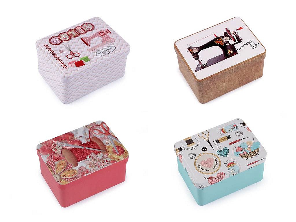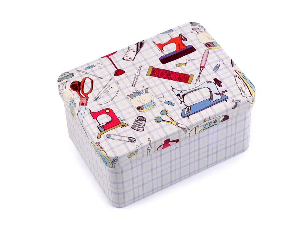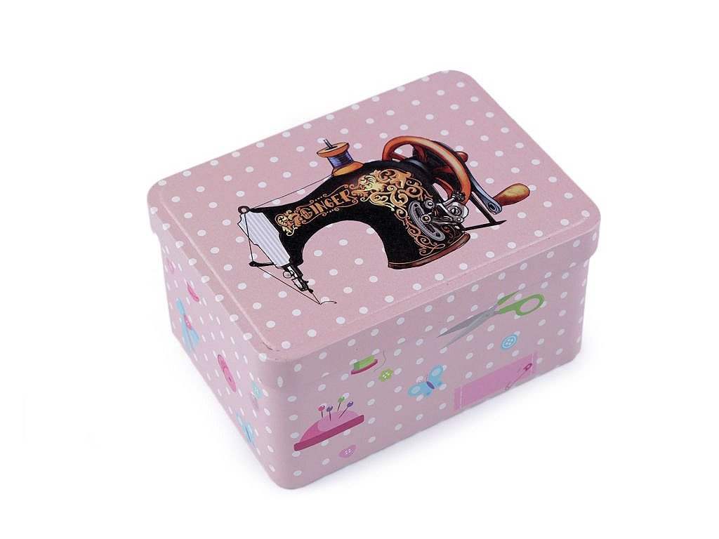 Plechovou krabičku využijete na drobnosti. Její švadlenkovský design ji předurčuje na uložení šicích potřeb jako jsou knoflíky, jehly, nitě, zkrátka všechny drobnosti, které švadlenka potřebuje. Víko je odklápěcí.