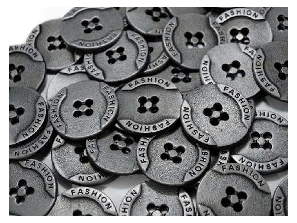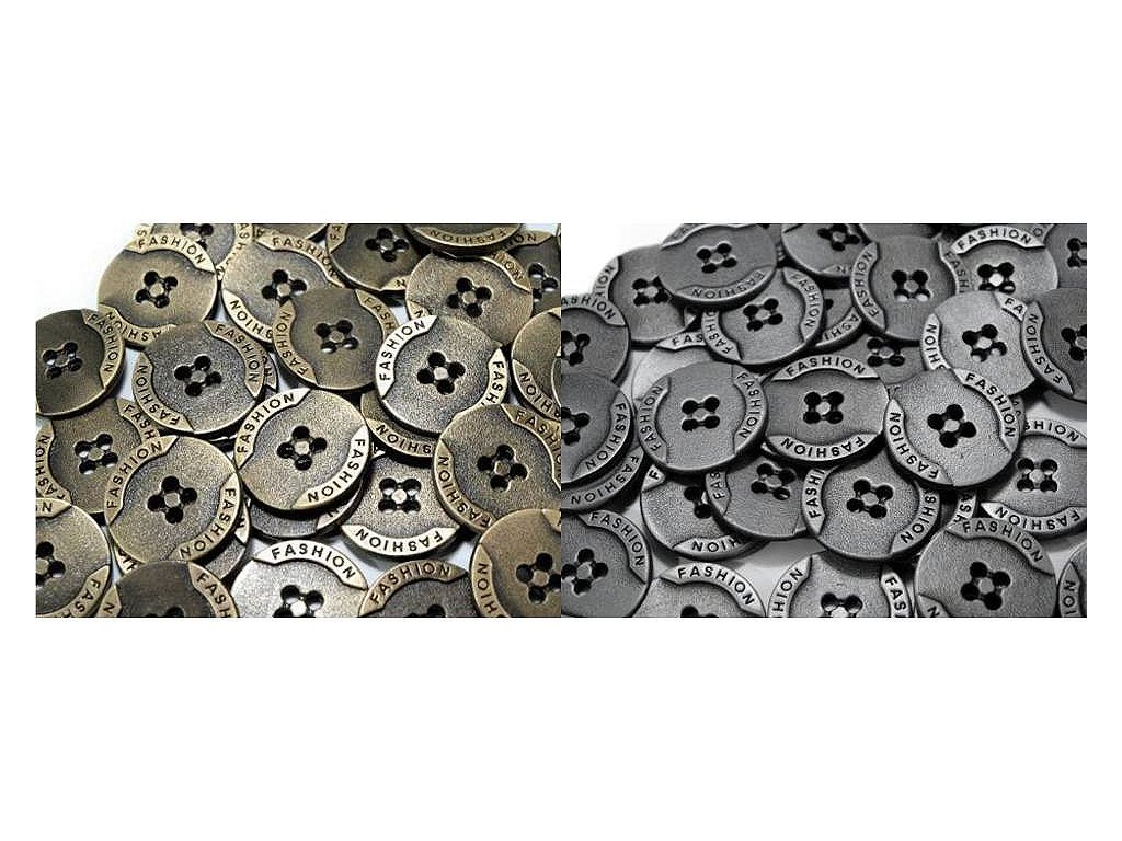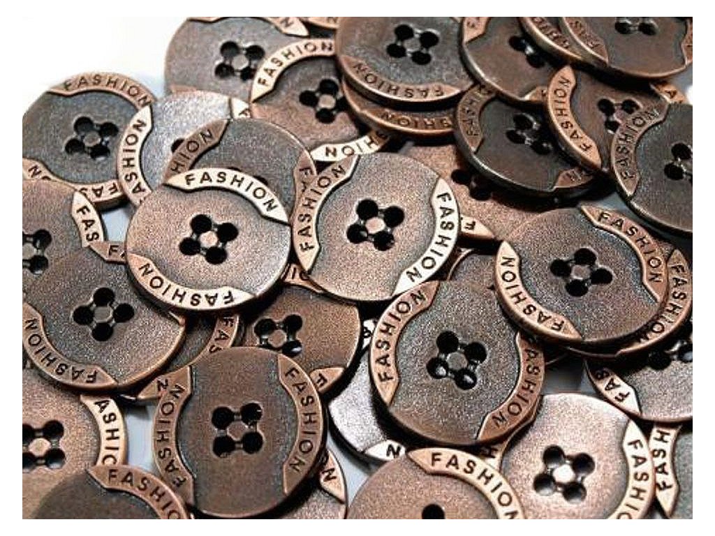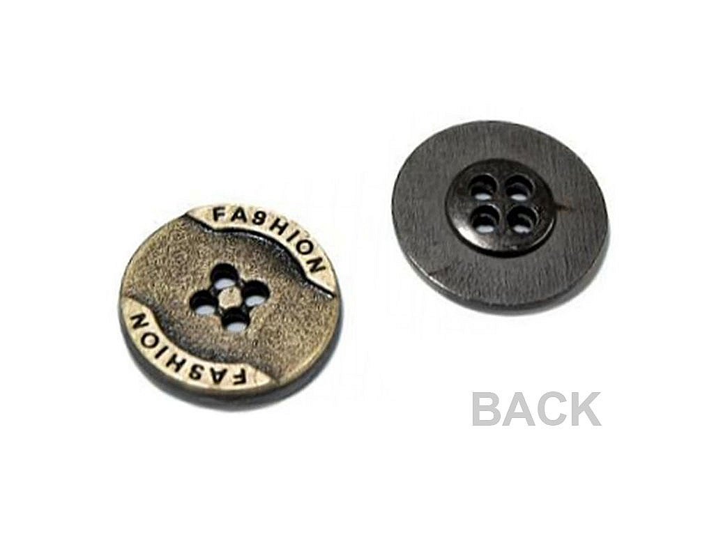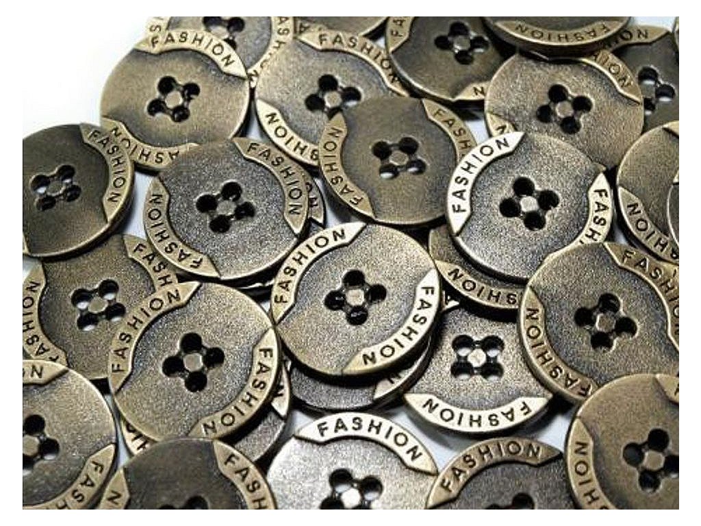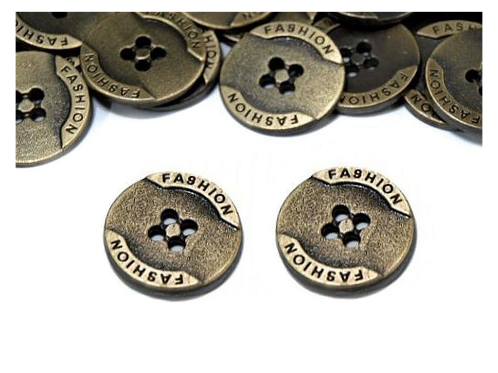 [Čtyřdírkové kovové knoflíky jsou kvalitní a vyrobené z nemagnetického kovu. Zdobí je nápis "fashion". Využijete je k našití na košile, mikiny, bundy apod. ]