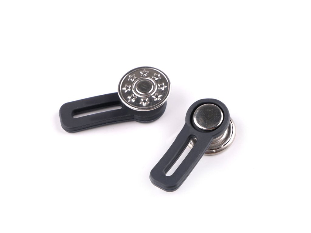 Prodlužovací knoflík je skvělým pomocníkem, když potřebujete rozšířit obvod v pasu riflí, riflových sukní nebo kraťasů. Je opatřený měkkým silikonovým očkem, který se lehce přizpůsobí.