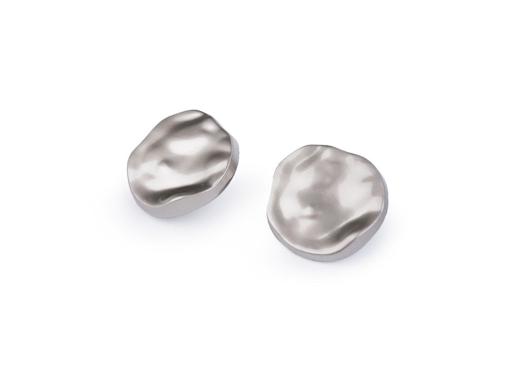 Menší kovové knoflíky vás zaujmou svým neotřelým "pomačkaným" vzhledem. Jsou vhodné k našití na saka, kabáty, svetry nebo také na doplňky jako jsou kabelky, tašky či batohy.