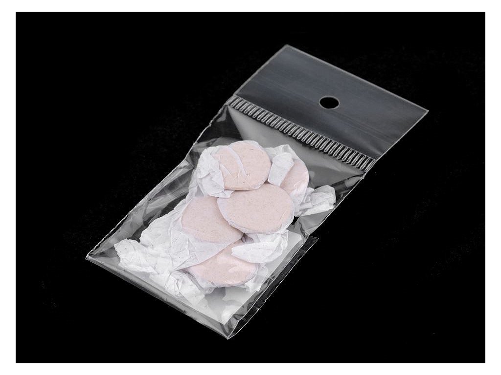 Knoflíky jsou baleny v sáčku, kde je každý z nich ještě zvlášť zabalený v papíře.Velikost knoflíků naleznete v této tabulce.