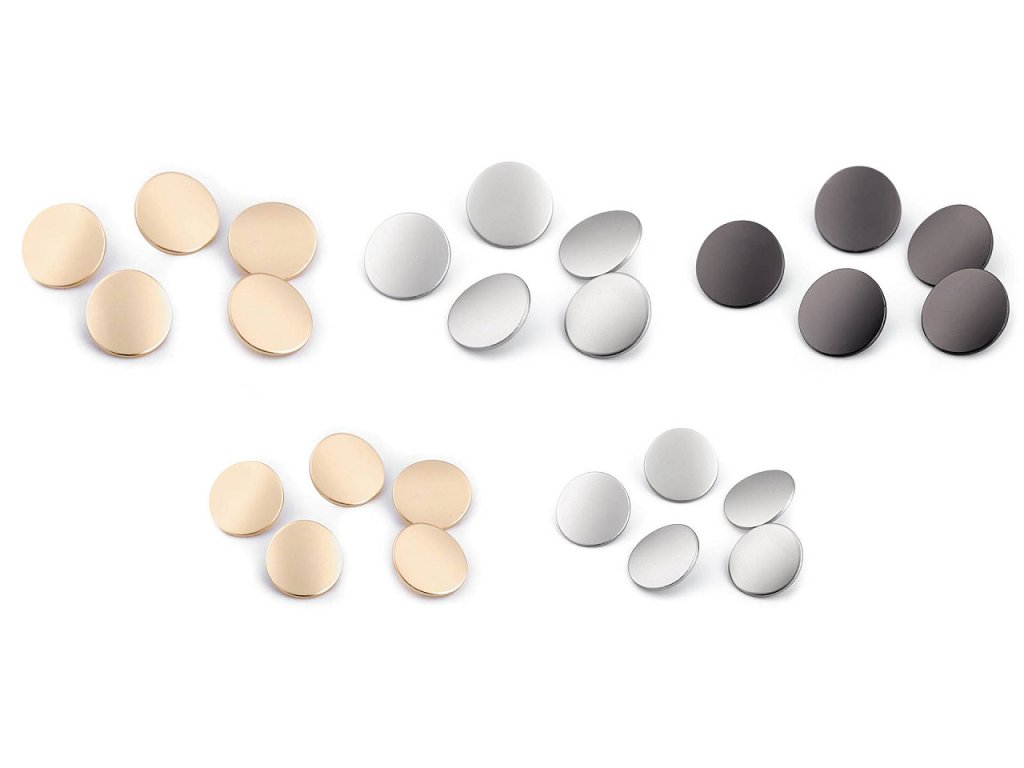 Matné kovové knoflíky se spodním přišíváním využijete k našití na saka, kabátky, svetry apod. Jsou tenké a mají nízkou hmotnost.