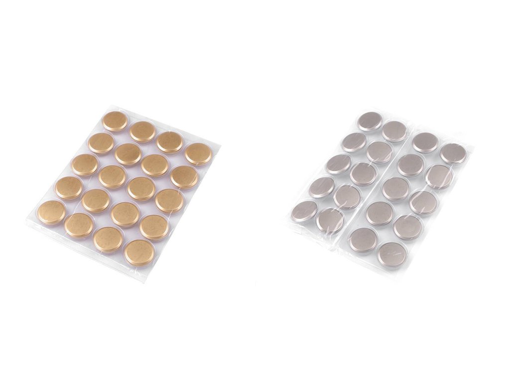 Ploché kovové knoflíky se spodním přišíváním ozdobí saka, kabáty, vesty nebo také na doplňky jako jsou kabelky či tašky. Vynikají vysokou kvalitou. Knoflíky nejsou ploché celé, okraje mají zaoblené.
