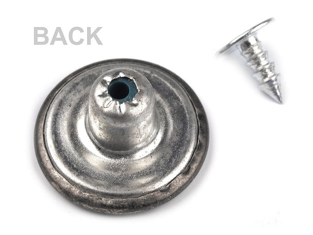 Narážecí knoflík využijete na džíny, džínové bundy, vesty apod. Skládá se ze dvou částí [(samotného knoflíku a nýtu)], které do sebe narazíte, například kladivem. [Ke každému knoflíku je nýt.] Délka nýtu je 7 mm.