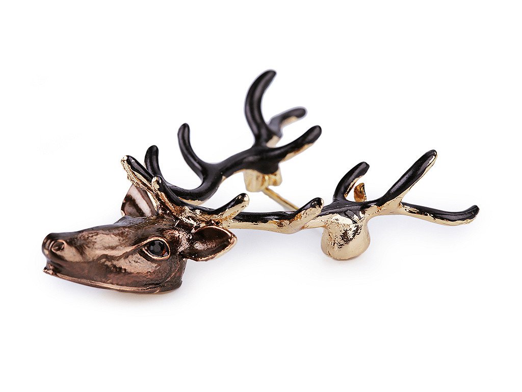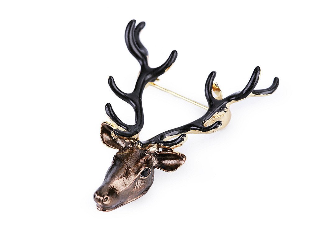Unisex brož s jelení hlavou s velkými parohy nadchne jak dámy, tak i každého myslivce. Bude vypadat skvěle na klopě pánského saka i na dámském kabátě či svetru.