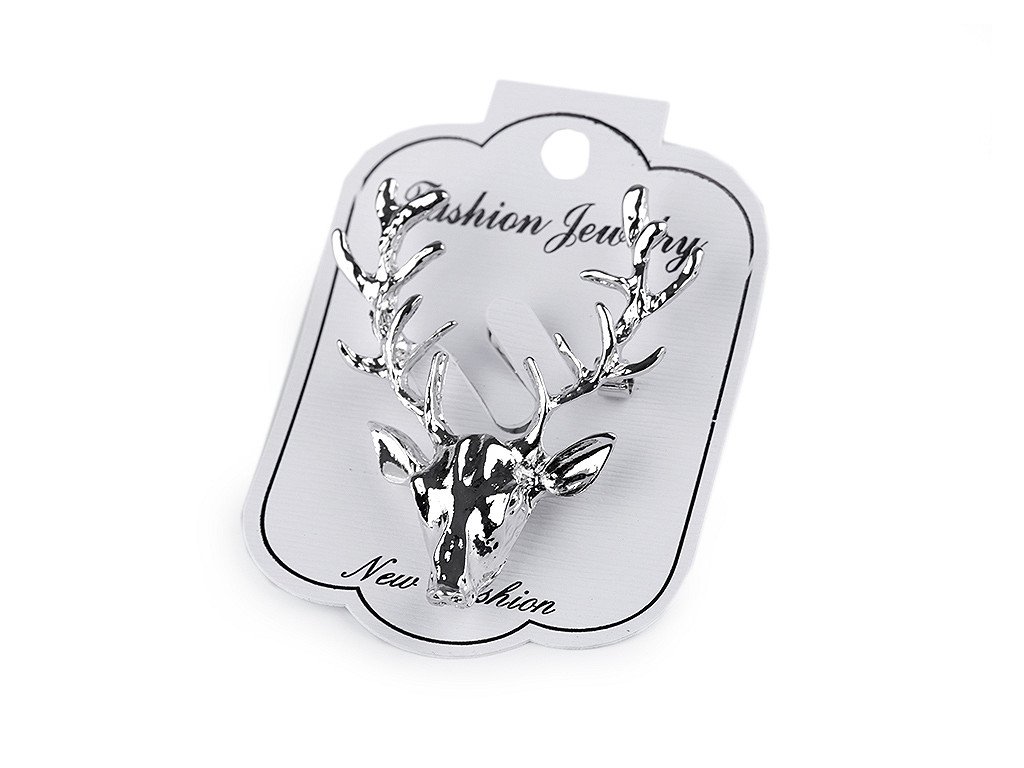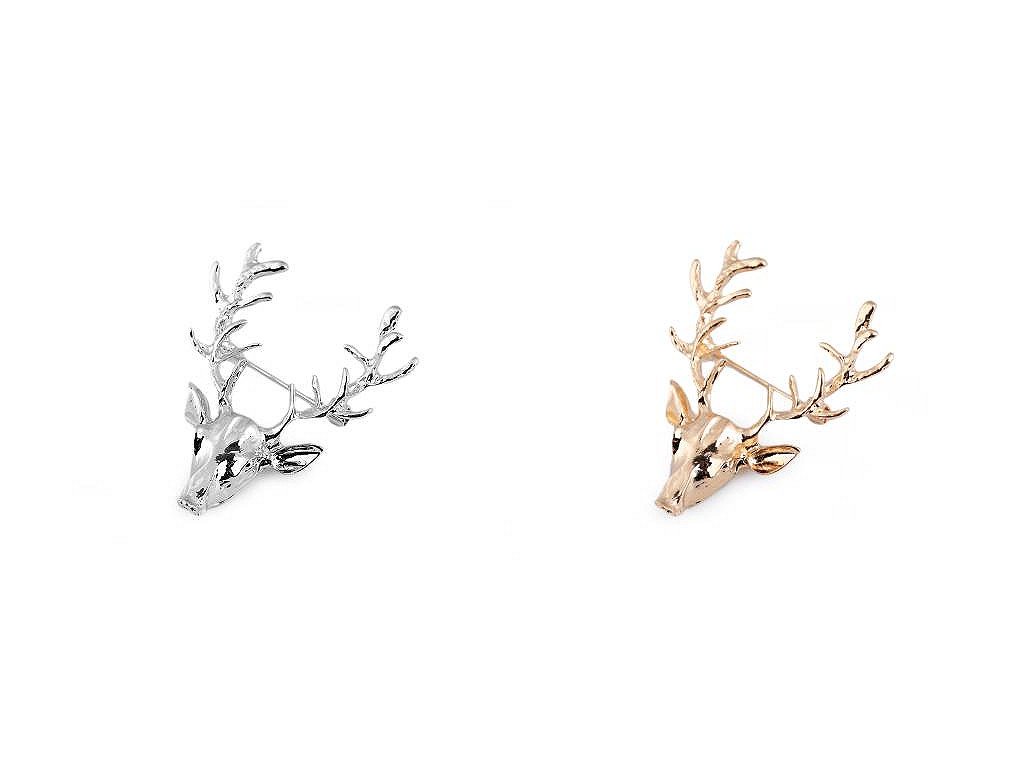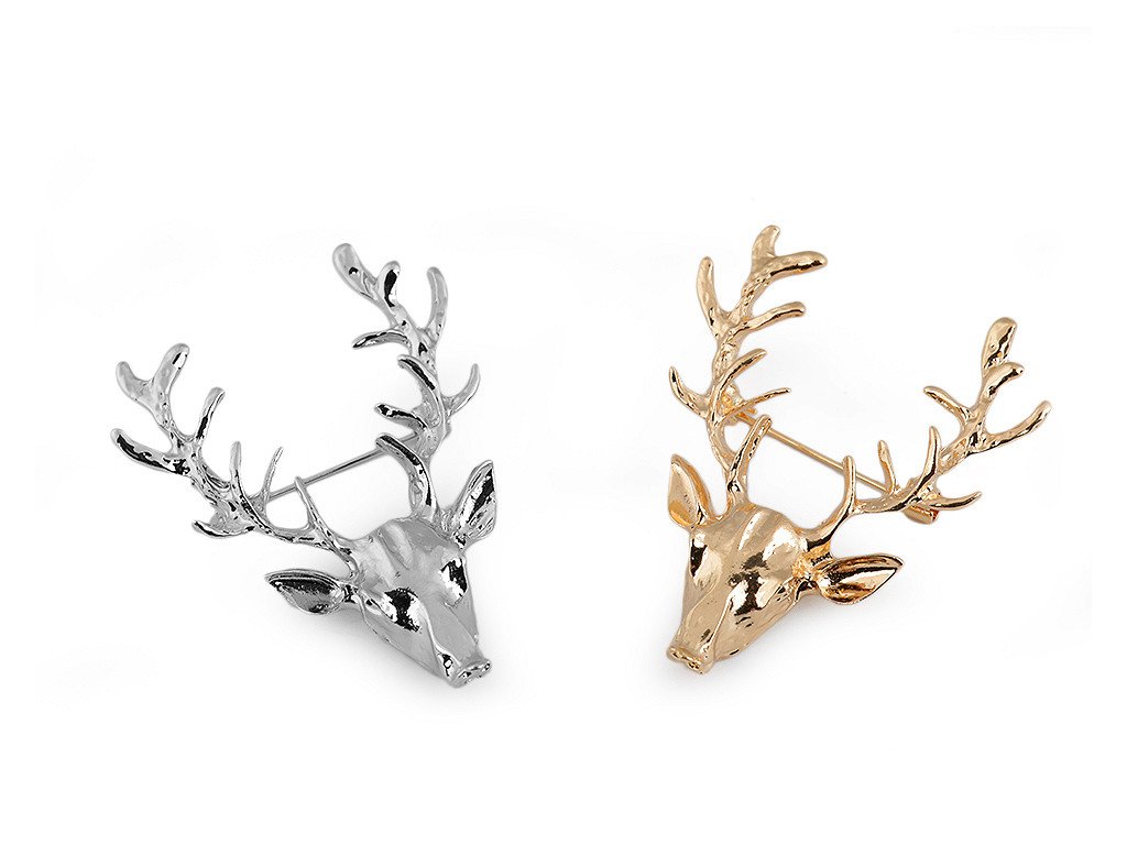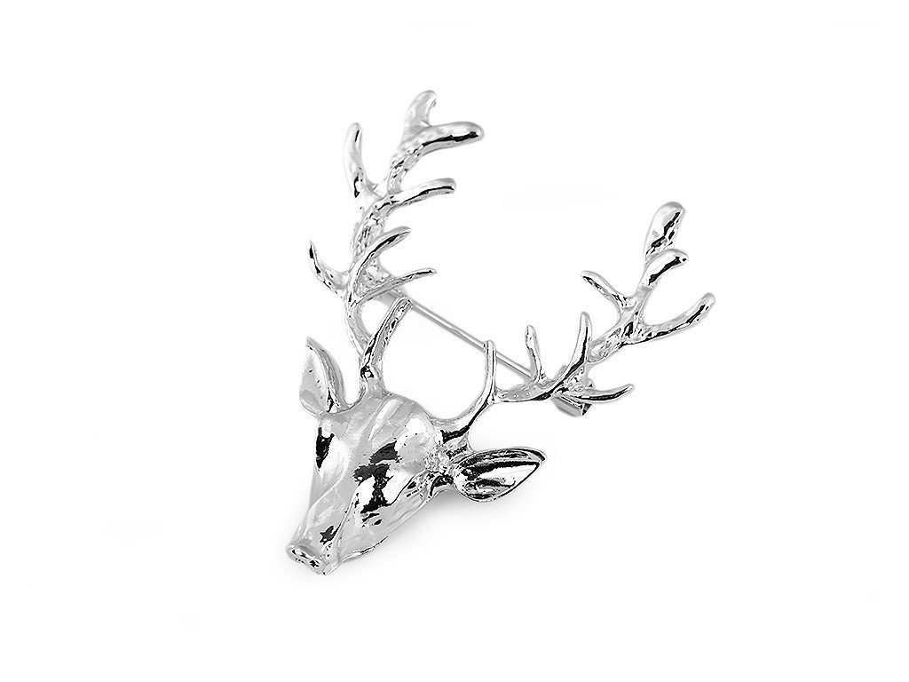 Unisex brož s jelení hlavou s velkými parohy nadchne nejen každého myslivce. Bude vypadat skvěle na klopě pánského saka i na dámském kabátě či svetru.