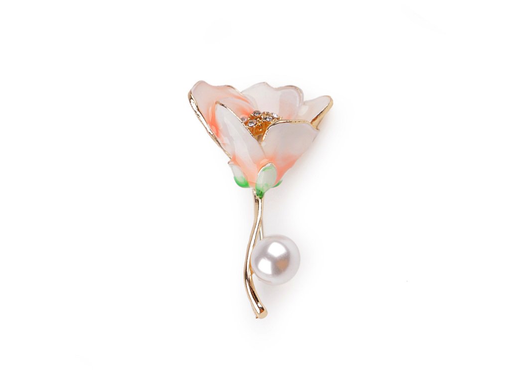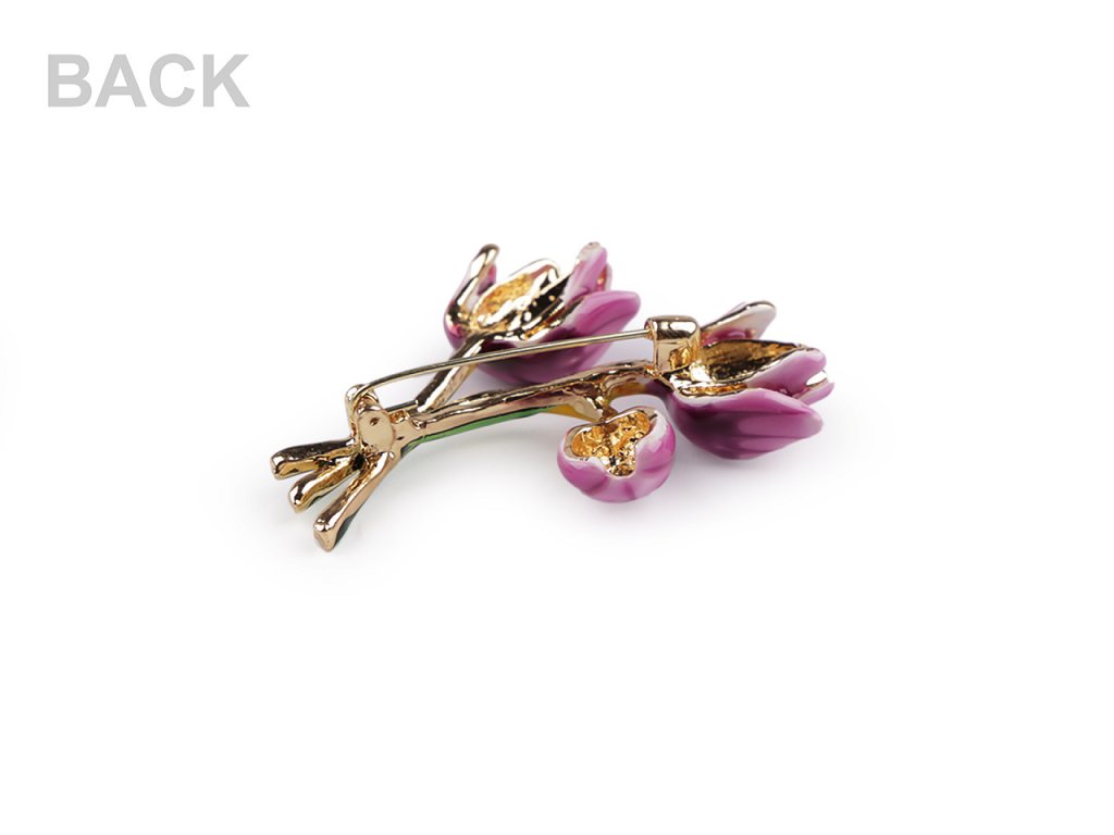 Kovová brož květu s barevným smaltem vás uchvátí svými romantickými tvary. Je velice elegantní, můžete ji využít na běžné nošení i na společenské události - návštěvy divadel, oslavy apod. Z rubu má brož zavírací špendlík. Můžete ji nosit nejen na oděvech, hodí se i k ozdobení klobouků, tašky či sepnutí šátku.