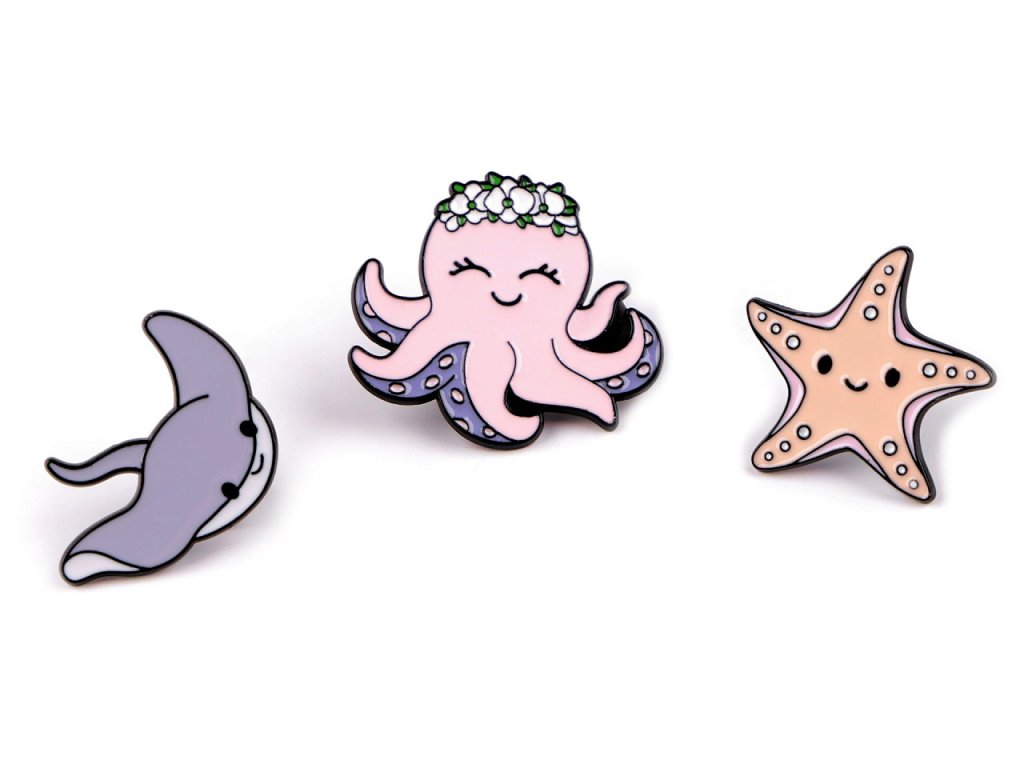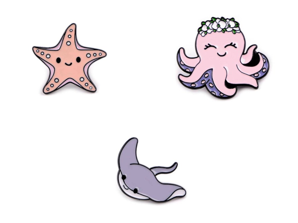 Malá brož s motivem mořských živočichů je ozdobená barevným smaltem. Je skvělým dárkem pro milovníky moře, díky hravému designu si ji oblíbí i malé slečny. Perfektně se hodí na kabát, sako či šálu, ale může být také zajímavým prvkem na tašce nebo klobouku. Má jednoduché jednobodové zapínání.