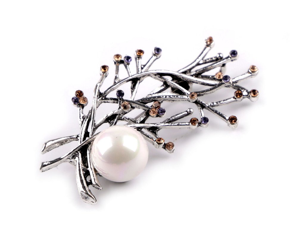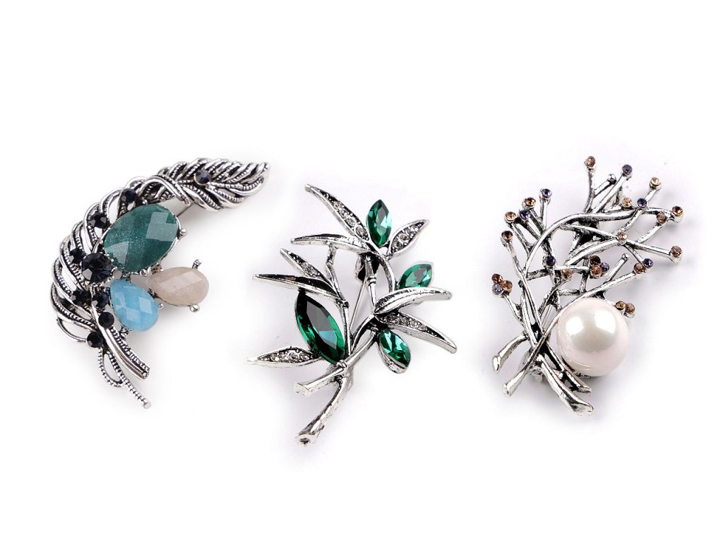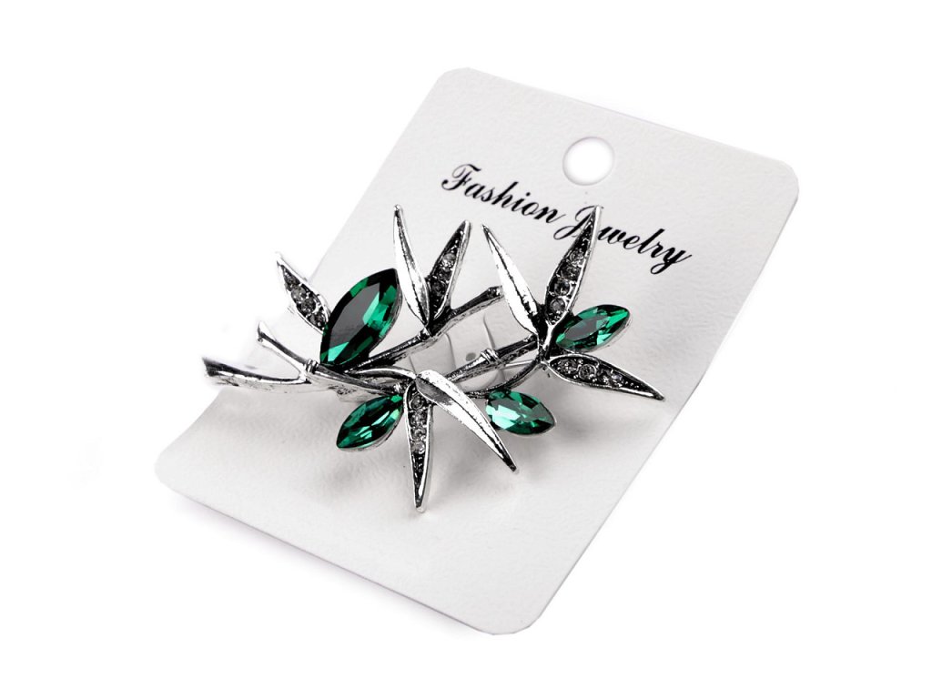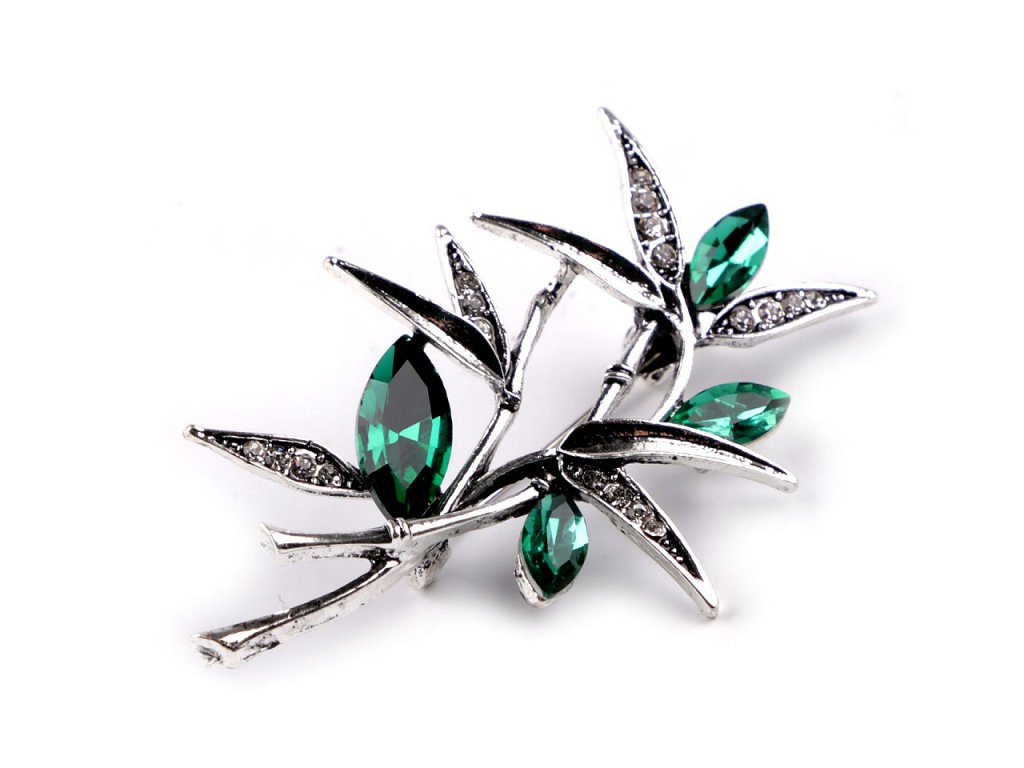 Elegantní brož s motivem rostlin bude dokonalým doplňkem vašeho oděvu. Díky broušeným kamínkům se efektně třpytí, skvěle dozdobí halenky, šaty, saka, svetry, kabáty, kabelky i čepice. Hodí se i na ozdobné sepnutí šátku.