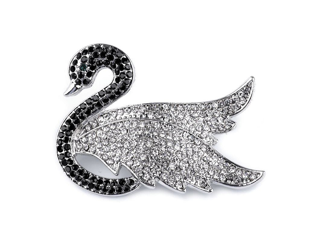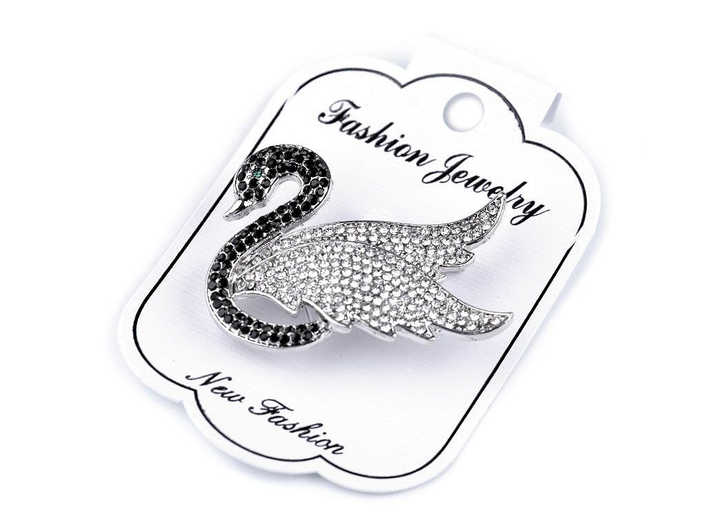 Elegantní brož ve tvaru labutě je celá osázená třpytivými, broušenými kamínky. Ze zadní strany má zavírací špendlík.