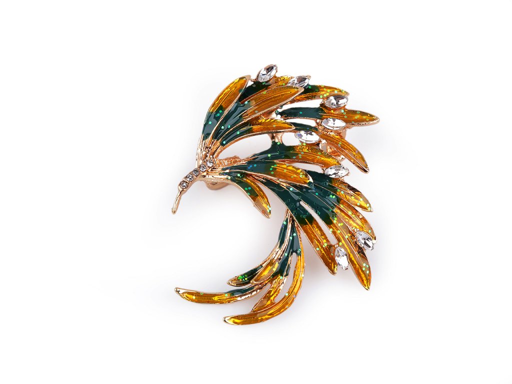 Efektně působí nejen na oděvech, ale je vhodná i k ozdobení klobouků, tašky či sepnutí šátku.
