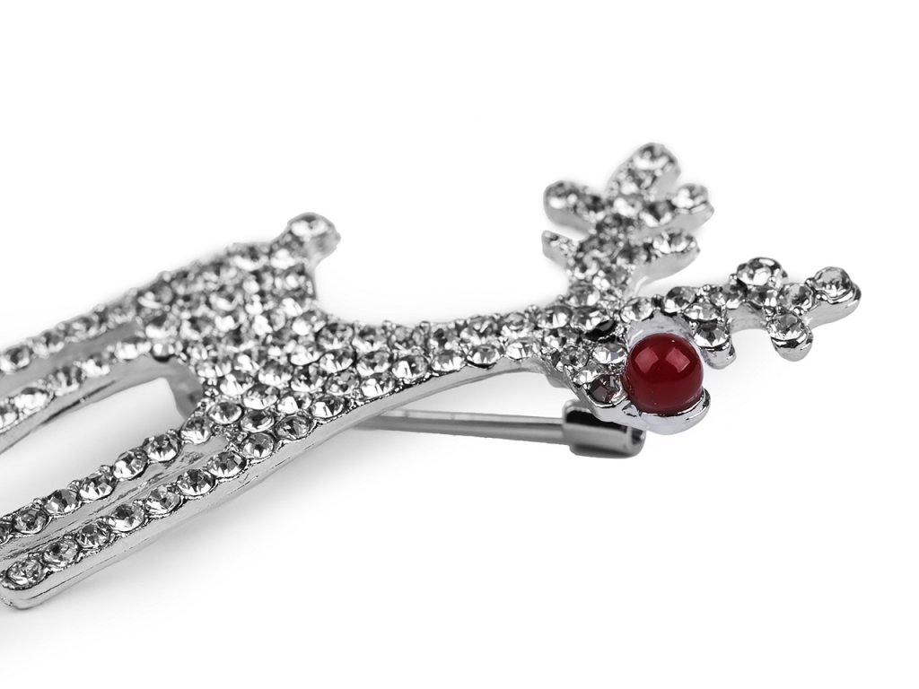 Elegantní brož se sobem bude zajímavým doplňkem vašeho oděvu. Díky třpytivým broušeným kamínkům skvěle dozdobí košile, saka, svetry, kabelky či čepice.