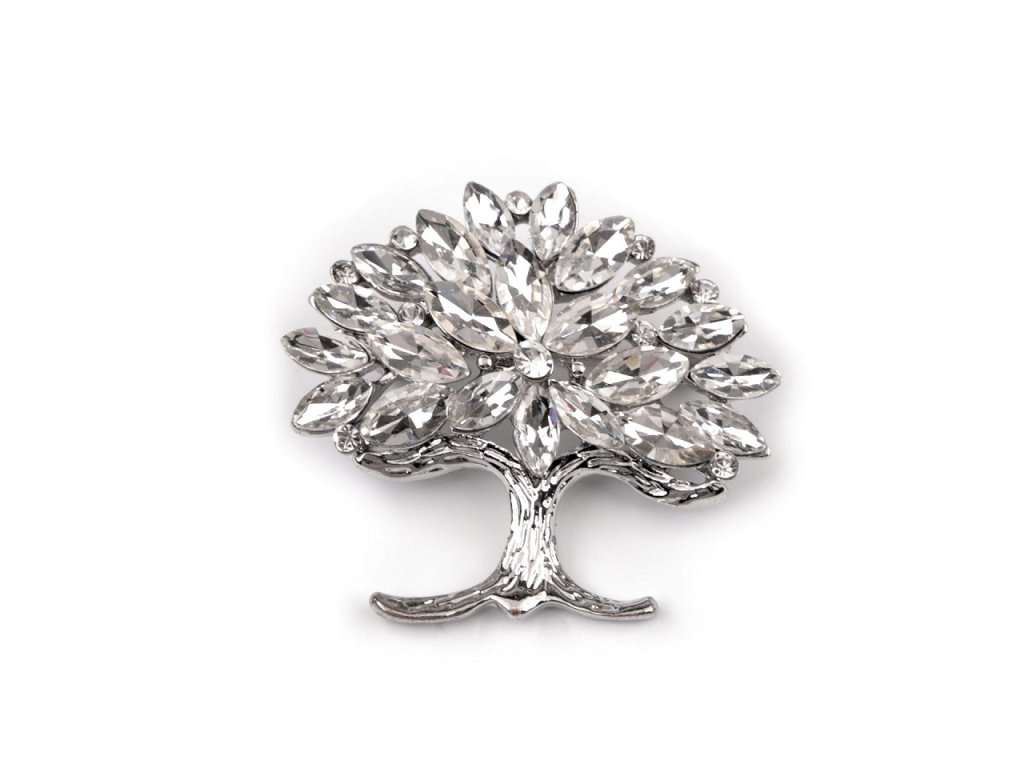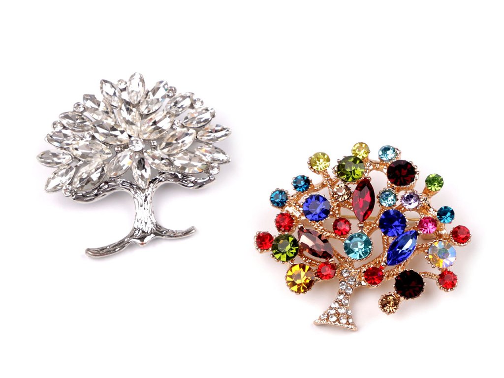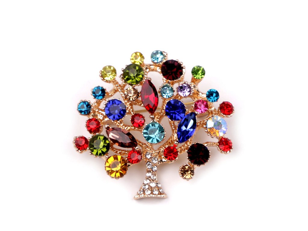 Elegantní kovová brož strom života je velice výrazná, upoutá na první pohled třpytivými broušenými kamínky. Doladí vaše šaty, sako, kostýmek, halenku, klobouk i tašku. Můžete ji využít jako spínací sponu na šálu nebo šátek.