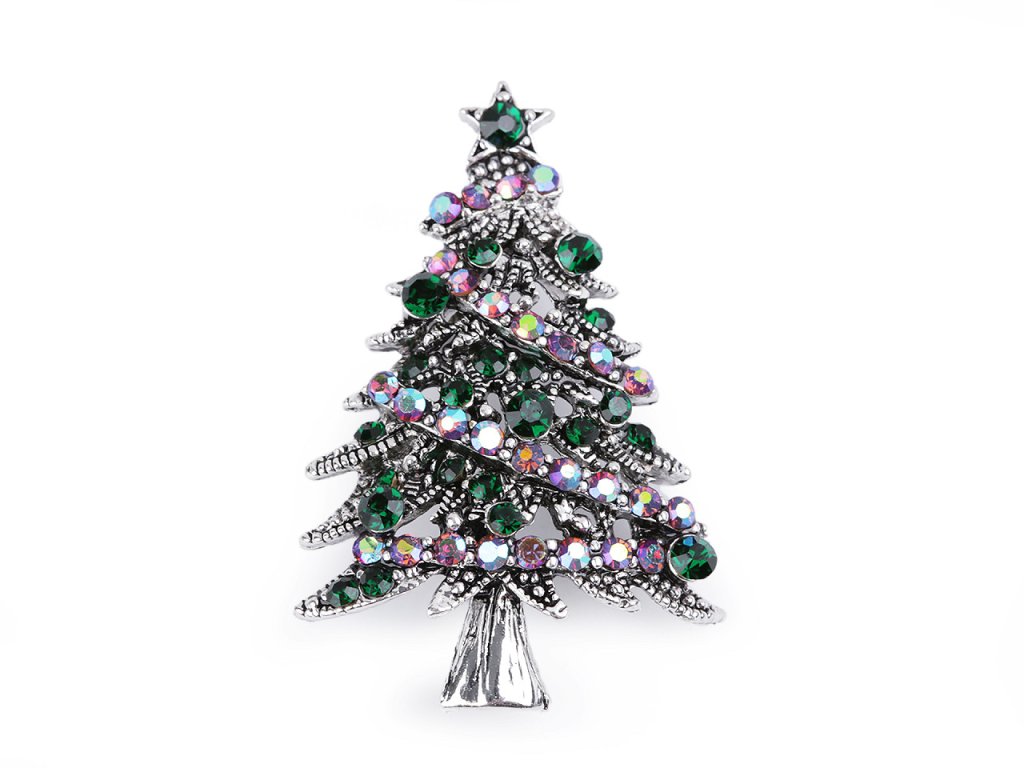 Elegantní brož vánočního stromečku bude zajímavým doplňkem vašeho oděvu. Díky třpytivým broušeným kamínkům skvěle dozdobí košile, saka, svetry, kabelky či čepice.
