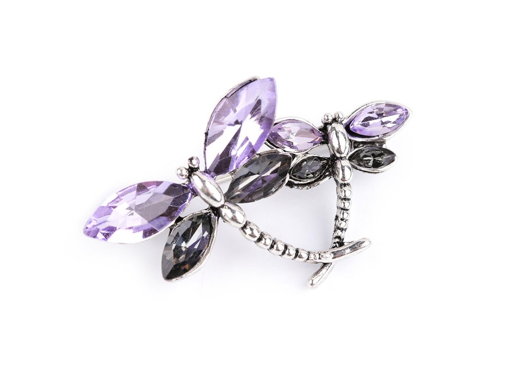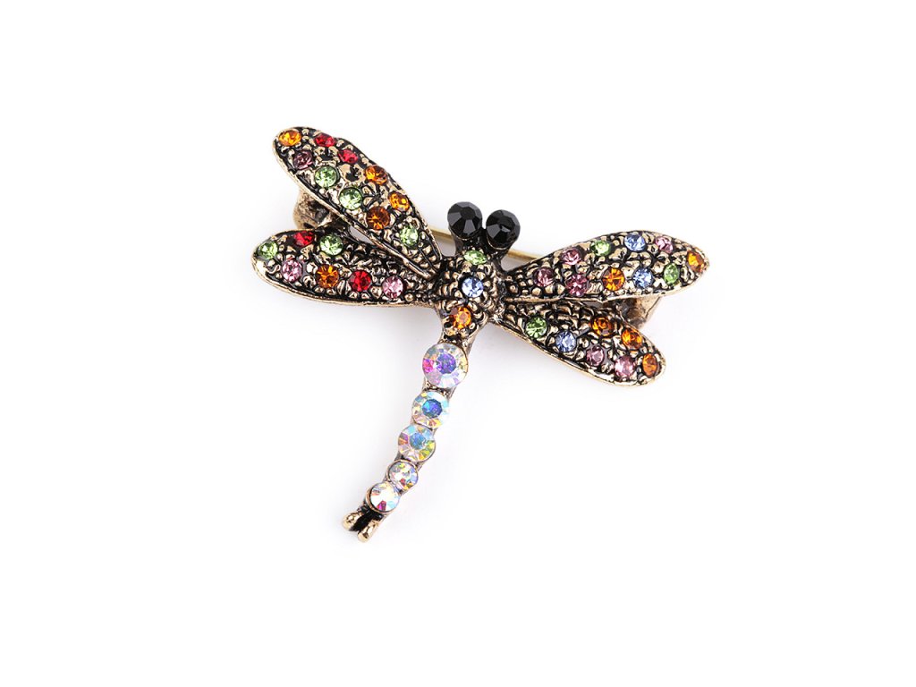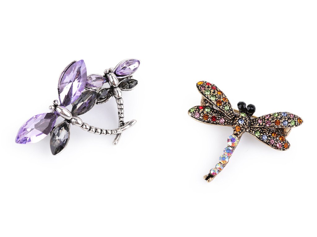 Brož ve tvaru vážky je velice elegantní, je ideálním dárkem pro ženy všech věkových kategorií. Je osázená drobnými broušenými kamínky, které se krásně třpytí. Zapíná se pomocí spínacího špendlíku.