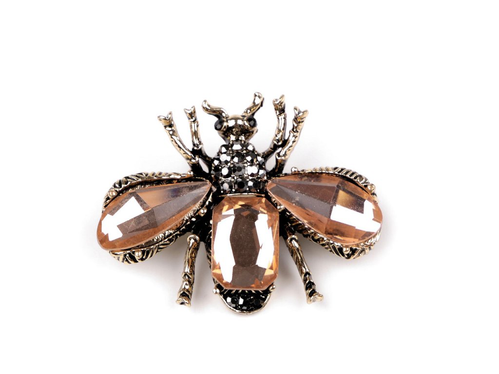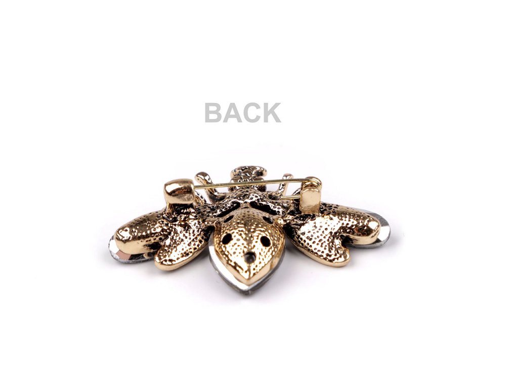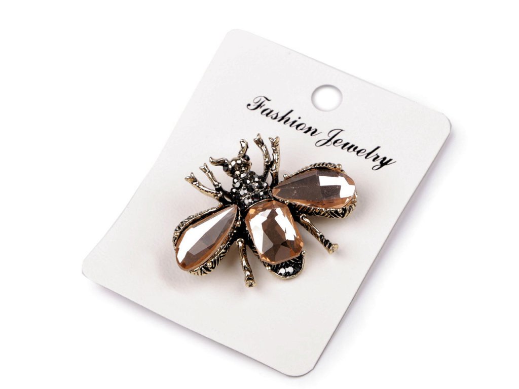 Elegantní brož včely působí velice přepychově. Celé tělo je osázené broušenými kameny a kamínky, které se oslnivě třpytí. Na zadní straně je spínací špendlík s pojistkou proti otevření. Brož můžete nosit nejen na oděvech, ale hodí se i k ozdobení klobouků či sepnutí šátku. Je na plastové kartě, která se dá zavěsit na prodejní stojany.