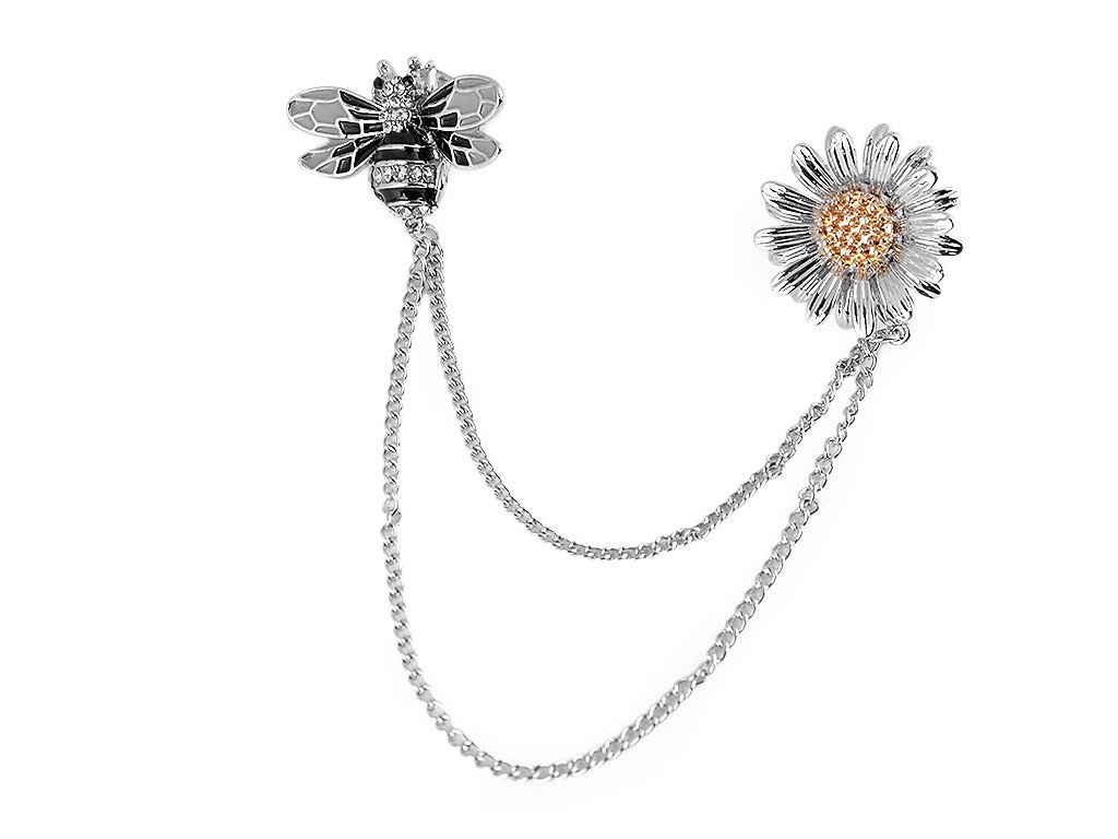 Elegantní brož dragoun s řetízky je ozdobená třpytivými broušenými kamínky. Oživí každý outfit. Můžete si ji připnout na sako, kabát, košili, halenku i tašku.