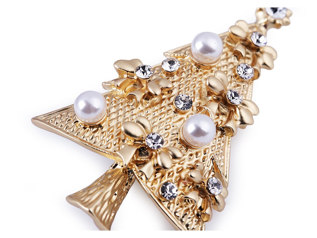 Elegantní brož vánoční stromeček působí starobylým, vintage dojmem. Je ozdobená broušenými kamínky a perlami, které se působivě lesknou. Využijete ji na společenské události - vánoční oslavy, večírky apod. Můžete ji nosit na oděvech, kloboucích, kabelkách nebo si s ní můžete sepnout šálu.