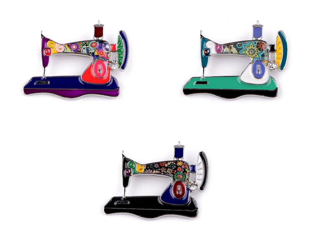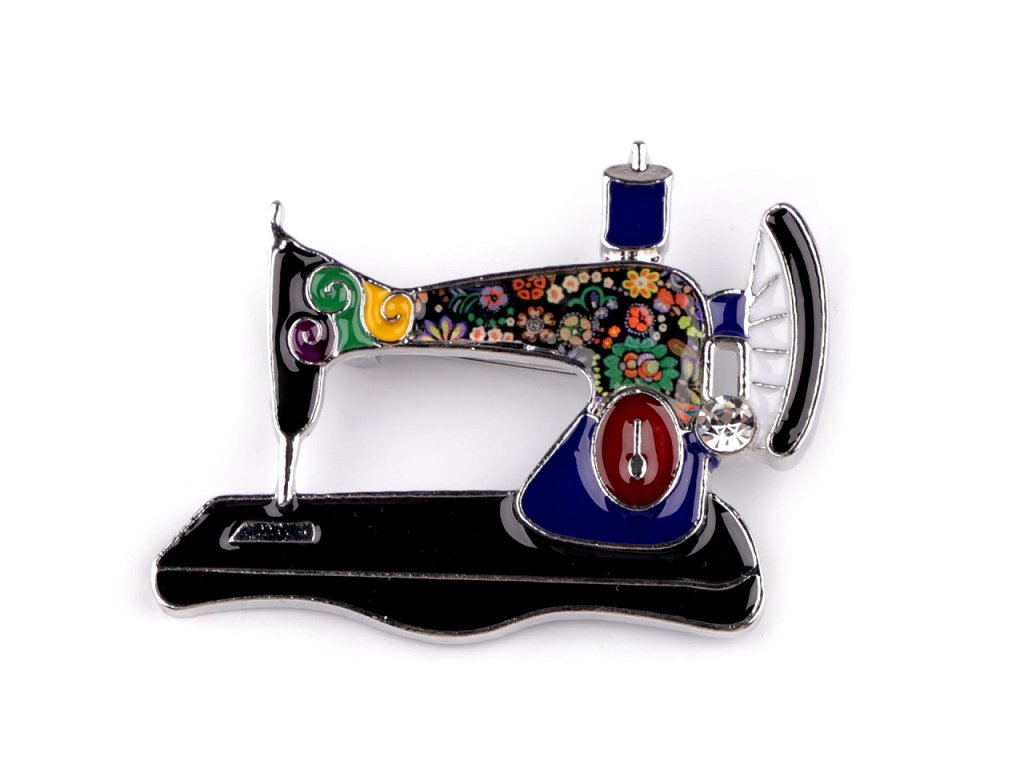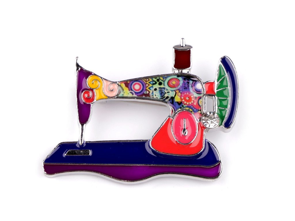 Smaltovaná brož šicího stroje bude skvělým dárkem nejen pro švadlenku. Ocení ji všechny kreativní ženy, které milují barvy. Je ozdobená broušeným kamínkem. Z rubu má brožový špendlík. Můžete ji nosit nejen na oděvech, hodí se i k ozdobení klobouků, tašky či sepnutí šátku.