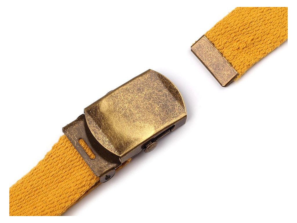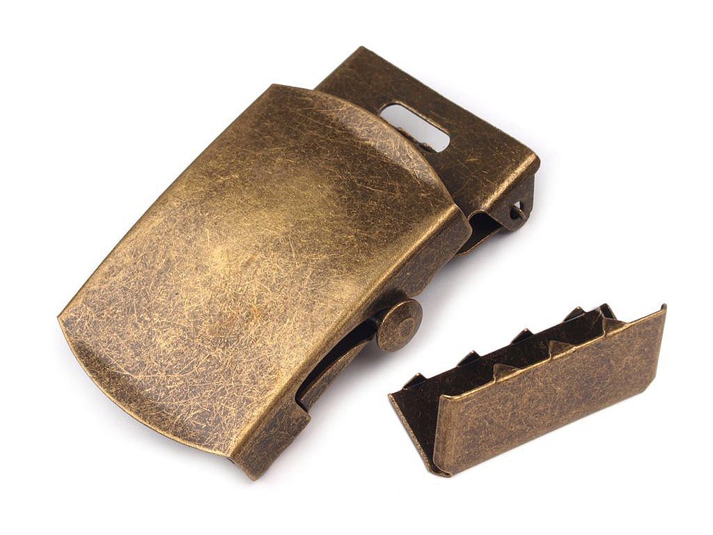 Kovová spona s koncovkou je určená na výrobu popruhových (látkových) opasků. Spona má na jedné straně zoubky, které popruh dobře zafixují a přidrží, takže materiál nebude prokluzovat. Koncovku připevněte kleštěmi na konec opasku.