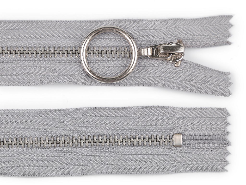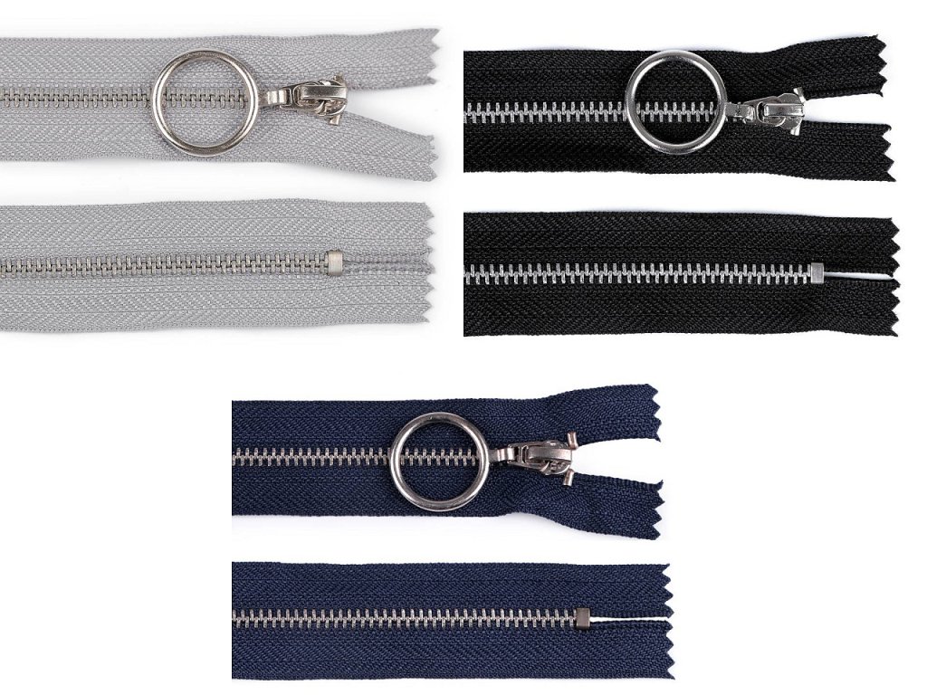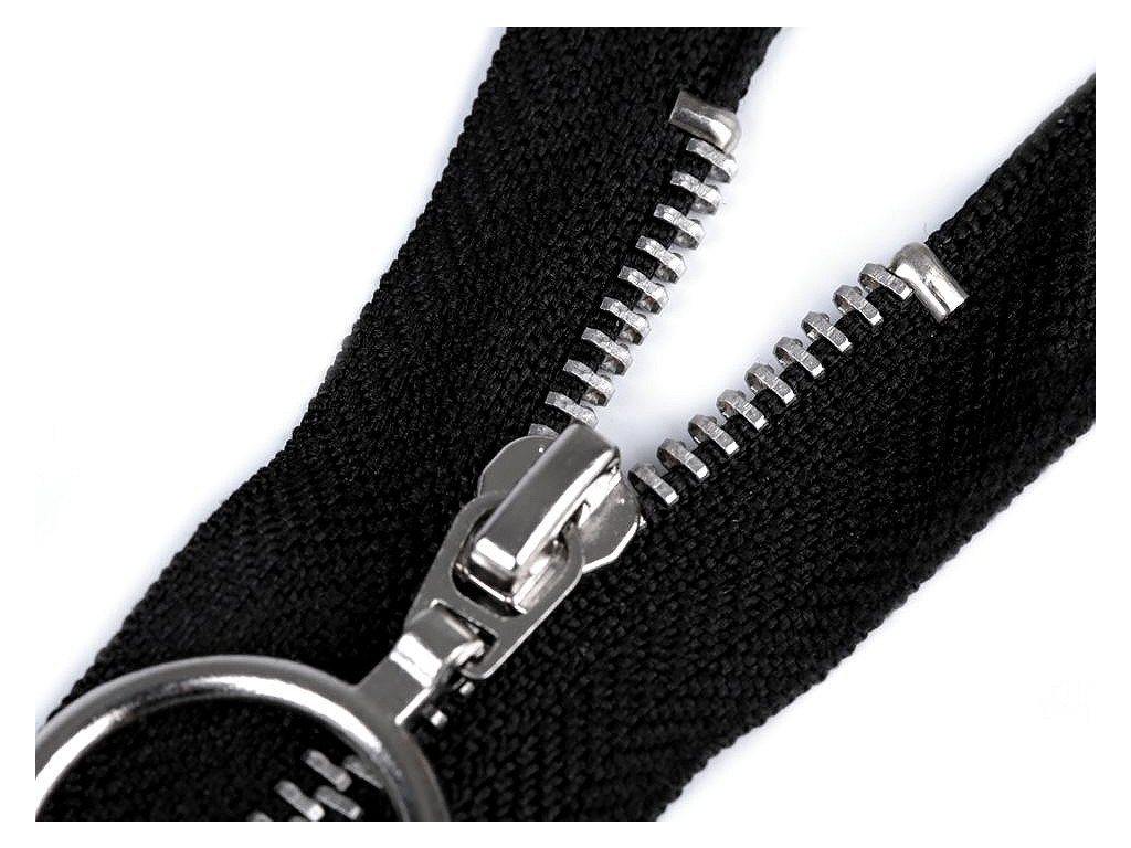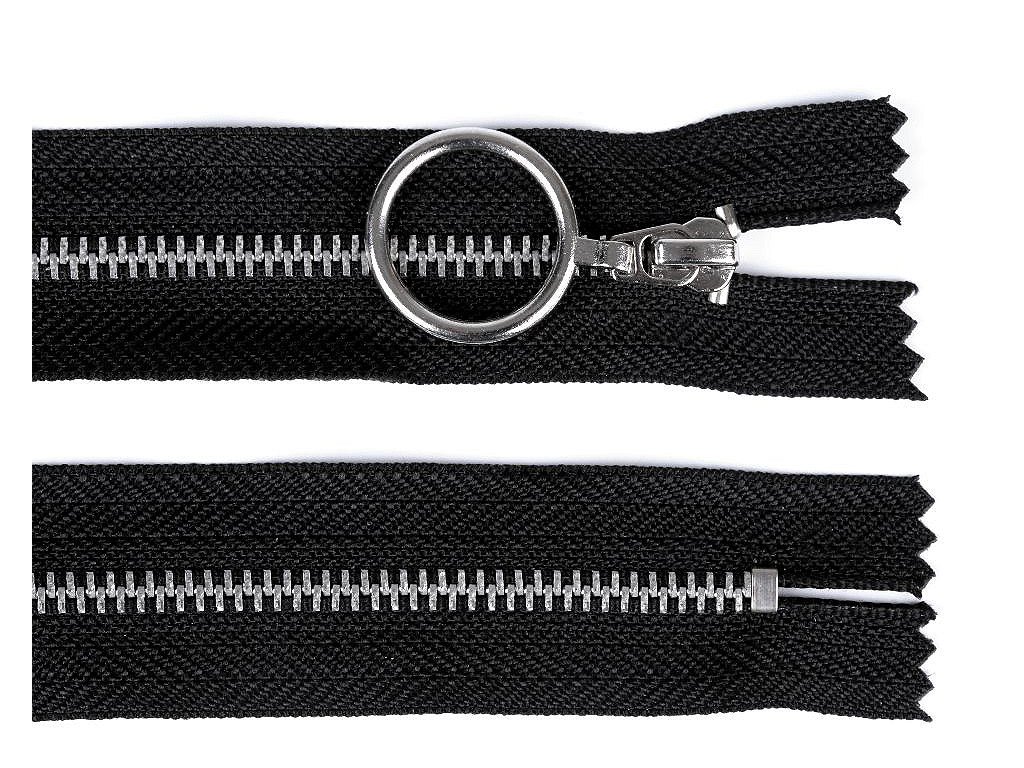 Kovový zip můžete našít na kalhoty, mikiny, trička nebo menší tašky. Má táhlo v podobě kroužku.