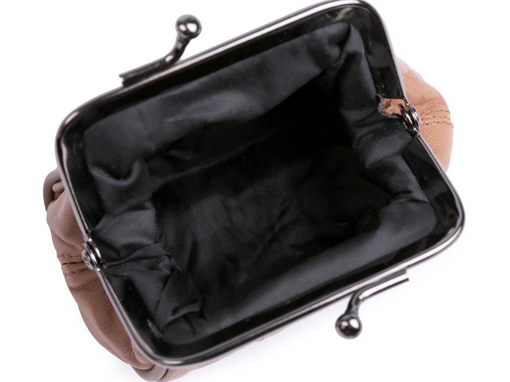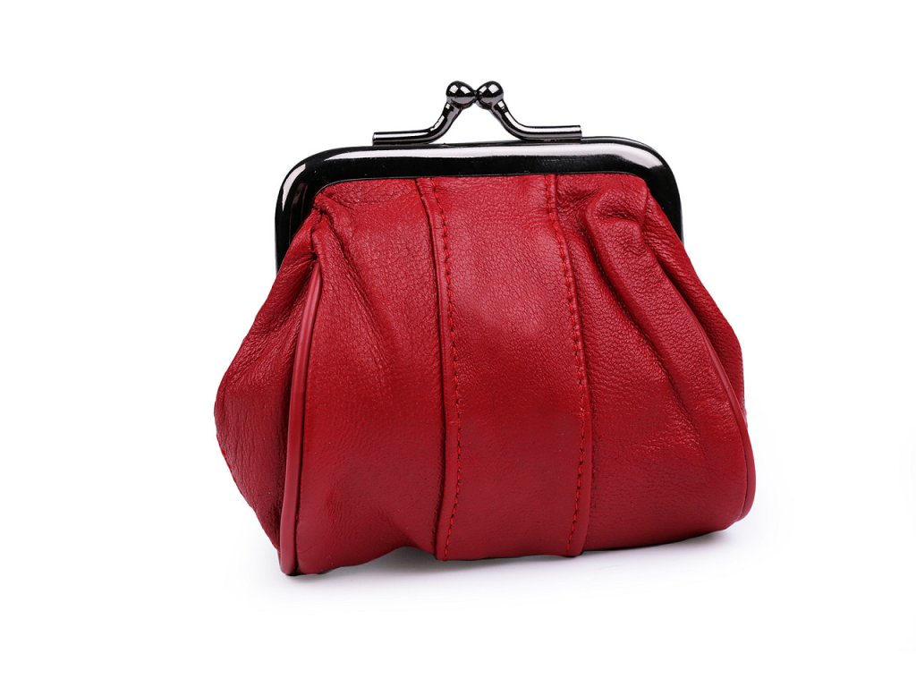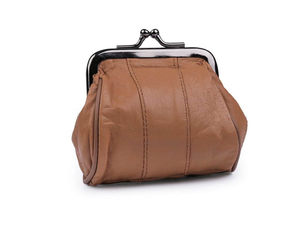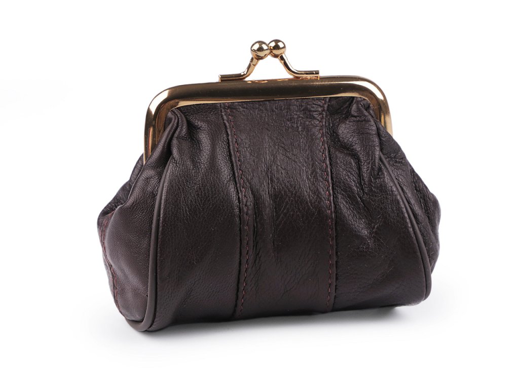 Malá peněženka z kůže je vhodná na drobné mince a klíče. Můžete do ní ukrýt také bankovky nebo dekorativní kosmetiku. Má velice kvalitní provedení, je lehká a příjemná na dotek. Kožený potah je nahoře zakončený kvalitním kovovým rozevíracím rámečkem se zapínáním.