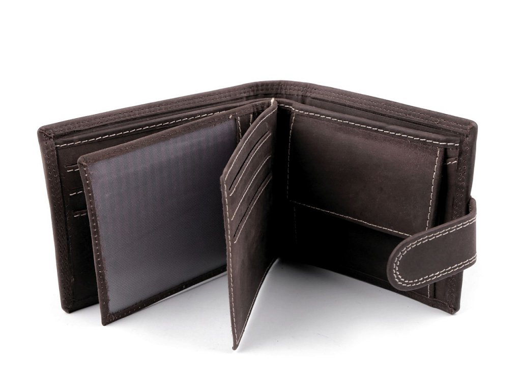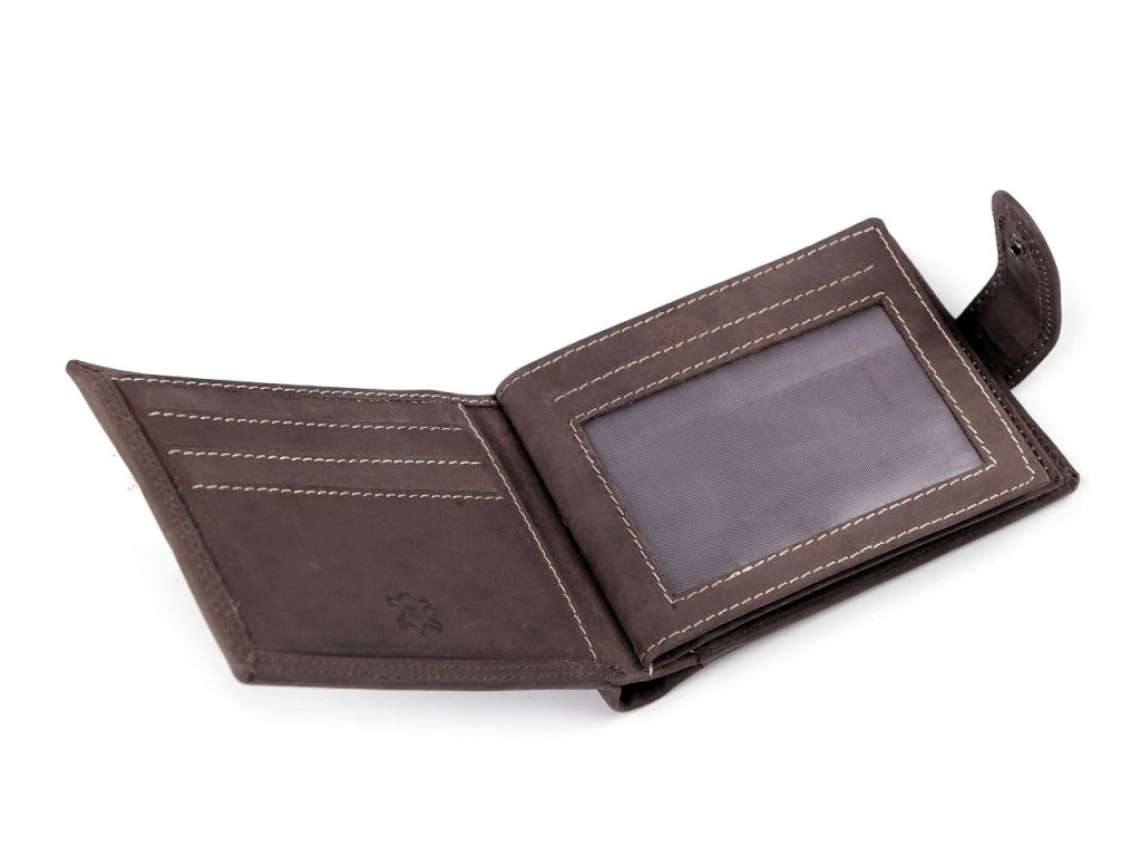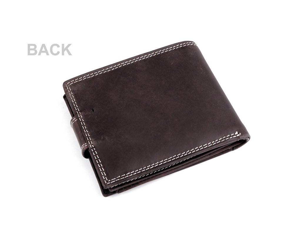 Luxusní pánská peněženka z pravé kůže má velice kvalitní provedení a chytrý design. Je pěkně a přehledně uspořádaná, lehká a příjemná na dotek. Na okraji má kontrastní štepování bílou nití.