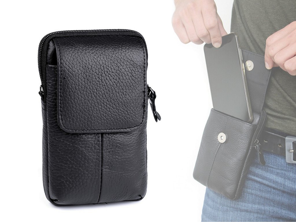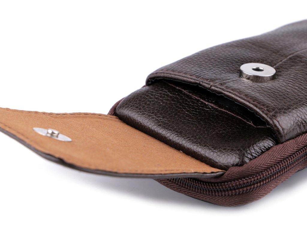 Pouzdro na opasek je vyrobené z eko kůže. Je stylovým doplňkem pro muže. Díky odepínacího popruhu jej můžete nosit přes rameno, okolo krku nebo křížem jako crossbody tašku.
