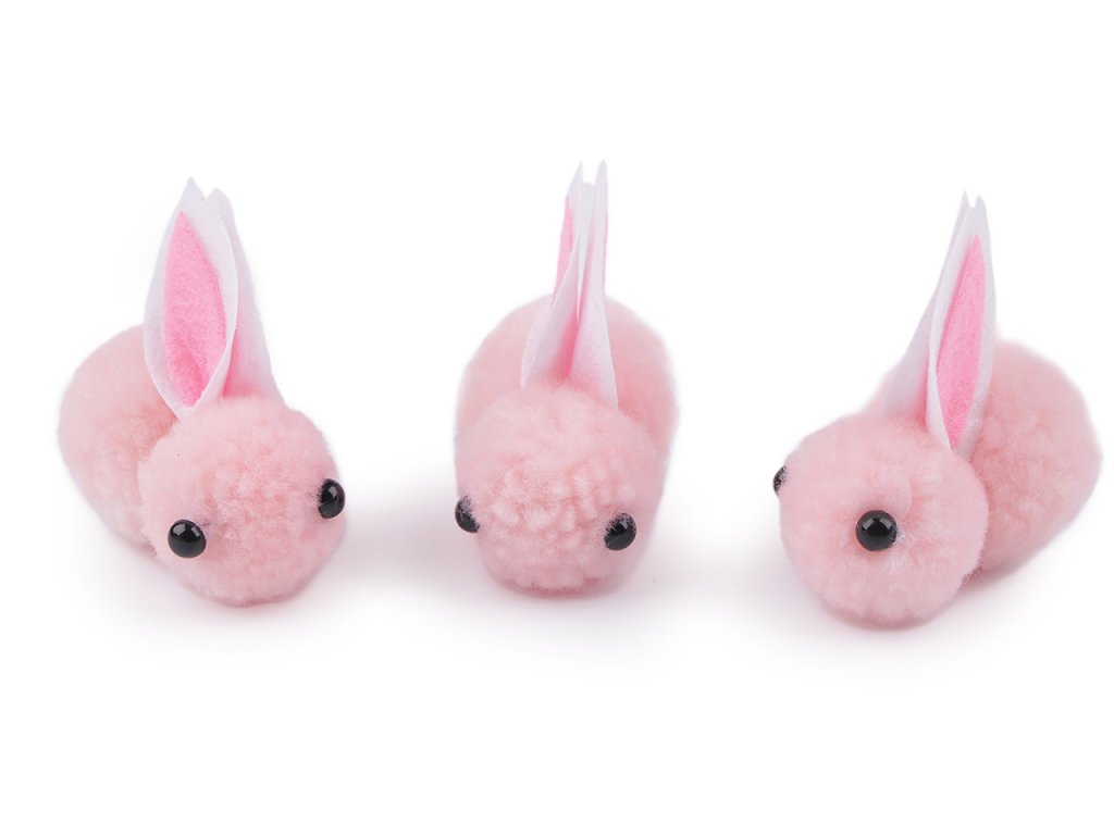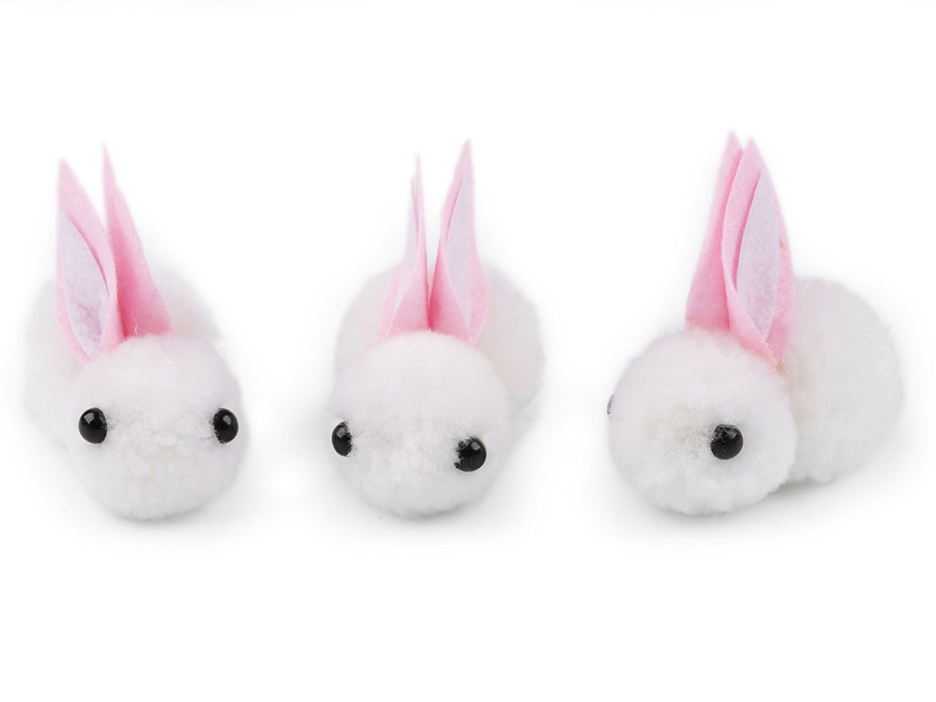 Polotovar králíčka zaujme na první pohled bambulkami a dlouhými oušky. Můžete ho našít nebo přilepit.