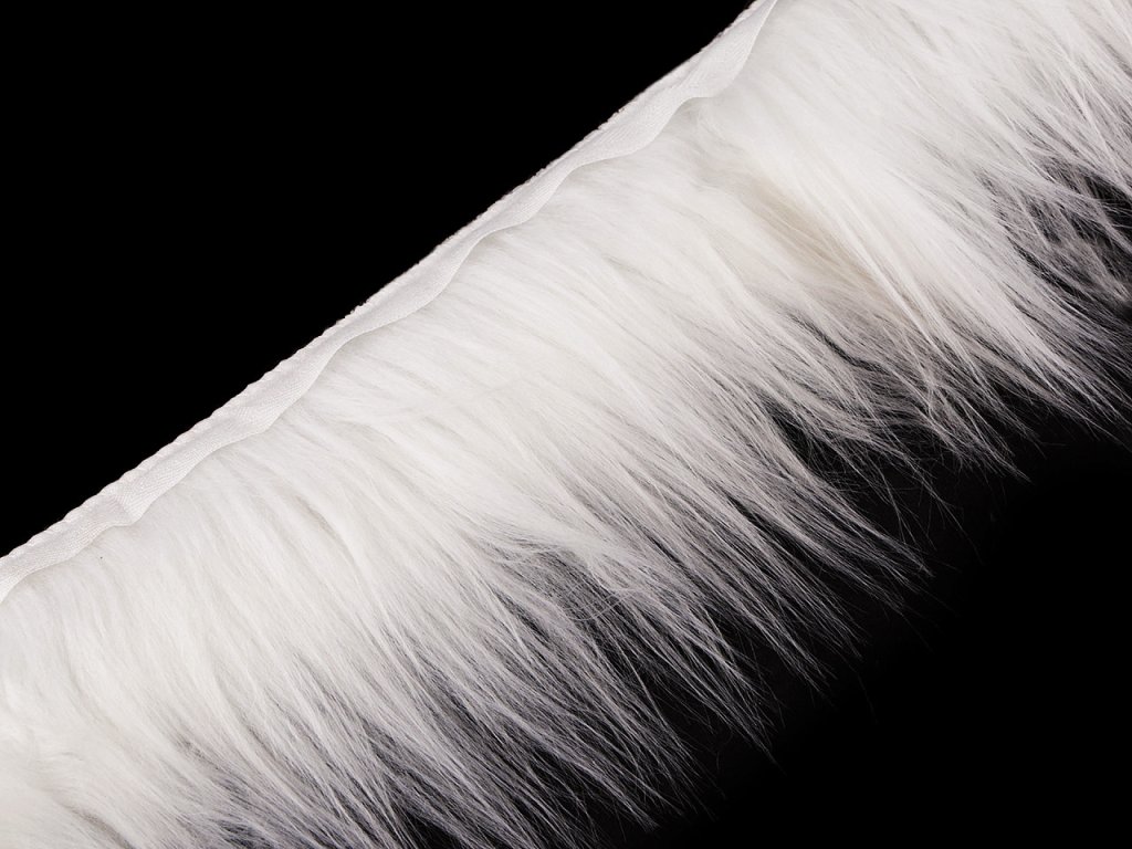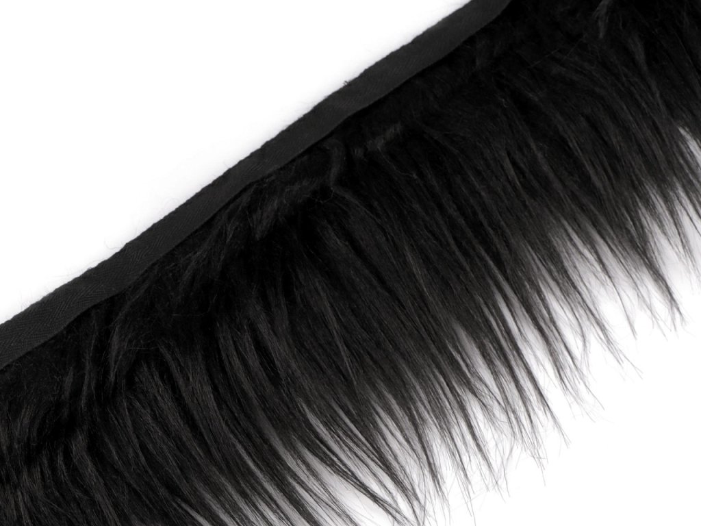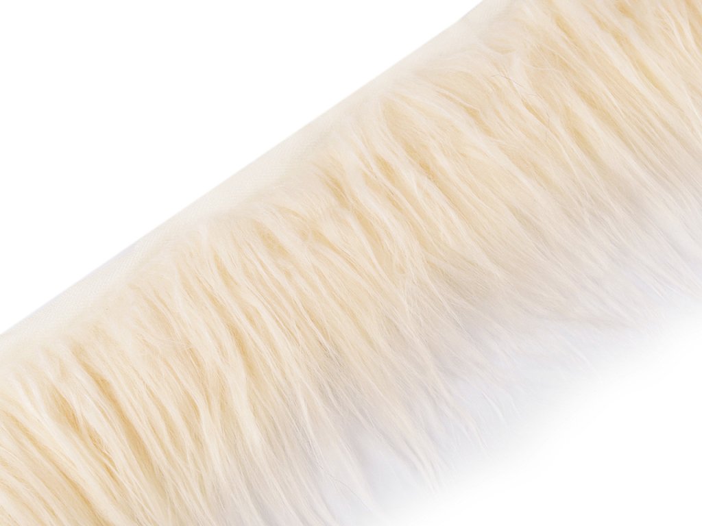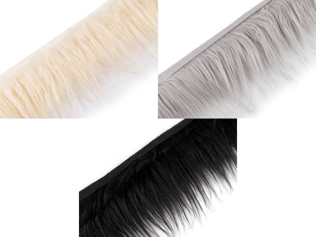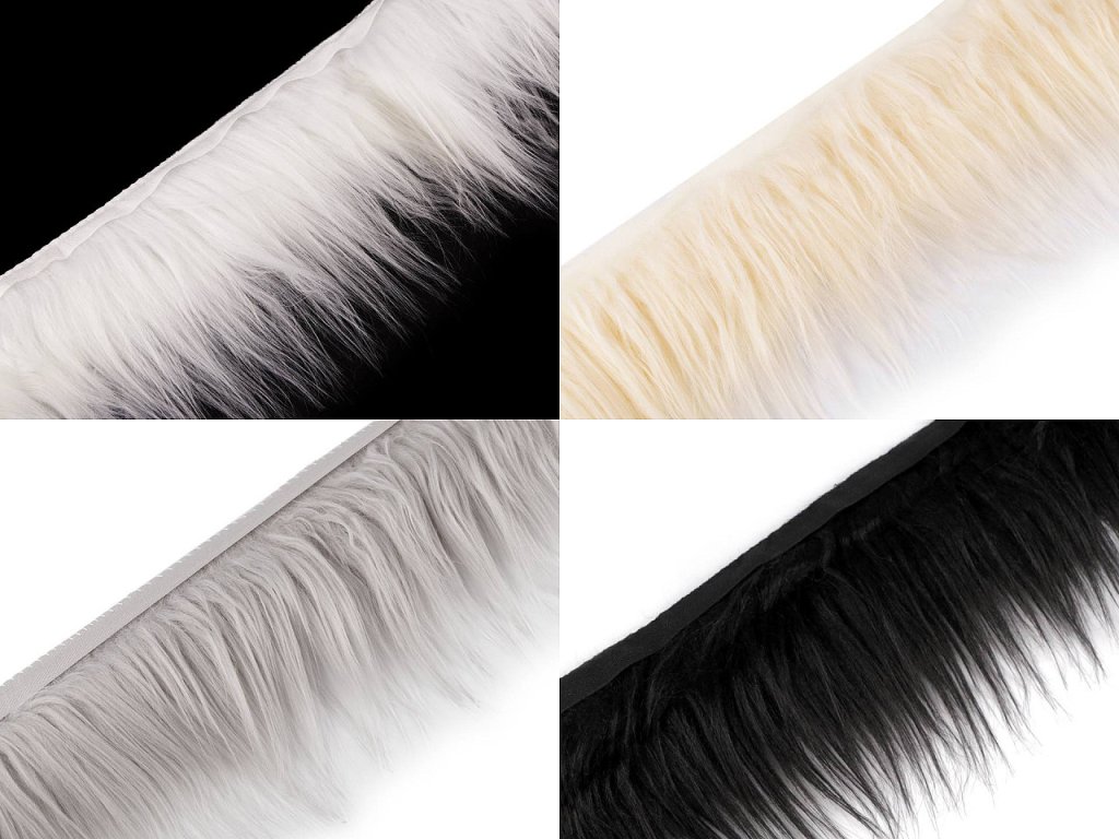 Umělá kožešina s dlouhými chlupy je na spodní straně podšitá. Je vynikající na výrobu skřítků a postaviček. Na bocích má textilní pruhy široké 1,3 cm, které slouží na přišití nabo všití do lemů či švů. Šíře podkladu (zadní textilní části kožešiny) je 4,8 cm (měřeno bez přišívacích textilních pruhů).