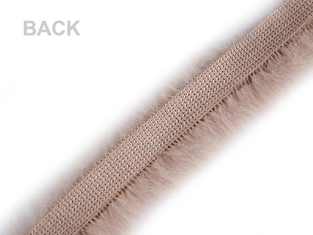 Umělá oděvní kožešina, má na spodní ploché straně pásku k přišití. Díky tomu ji můžete našít na lemy kapucí, rukávů, kabátů, čepic, rukavic apod. Je vhodná také na zdobení a výrobu skřítků a zimních dekorací.
